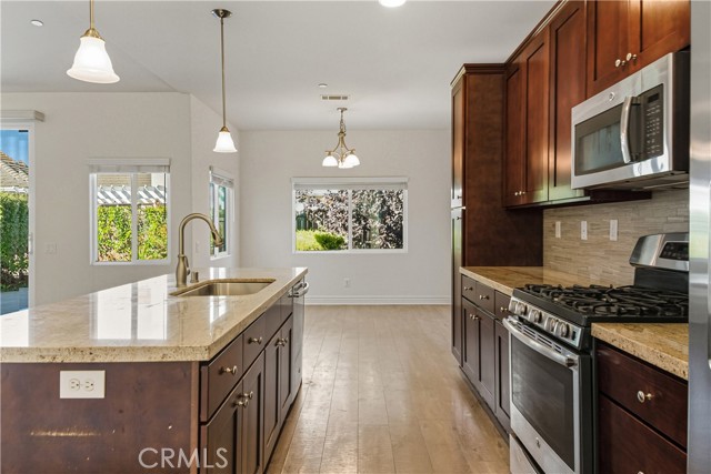 Welcome to 309 Hampton Drive, a stunning single-story home in Santa Maria's Legacy at La Ventana community. With no HOA, this immaculate 4-bedroom, 3-bathroom residence offers an expansive and open floor plan designed for both comfortable living and elegant entertaining As you step inside, you're greeted by beautiful laminate flooring and soaring vaulted ceilings that create an airy and bright atmosphere. The layout flows seamlessly from the formal living room to the spacious family room, providing plenty of space for every occasion. The formal dining room, complete with a convenient butler's pantry and a charming breakfast nook, is perfect for hosting dinner parties or enjoying casual meals. The gourmet kitchen is a chef's dream, featuring sleek granite countertops, an elegant Kohler farmhouse sink, and top-of-the-line upgraded GE stainless steel gas appliances. An impressive 8-foot sliding glass door connects the living area to the backyard, making indoor-outdoor living effortless. Retreat to the magnificent master suite, a private sanctuary designed for ultimate relaxation. The remaining three bedrooms are generously sized, and the three full bathrooms have been thoughtfully updated.