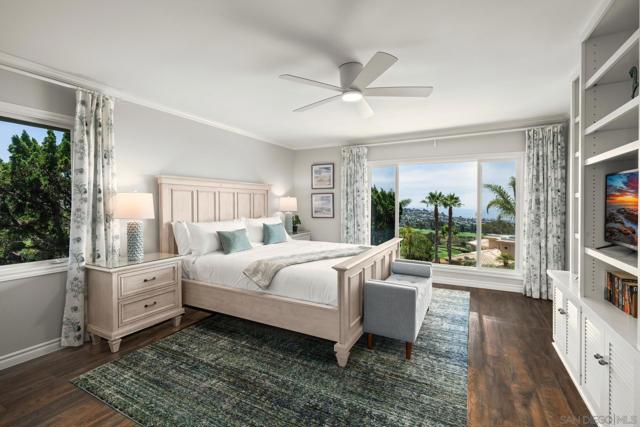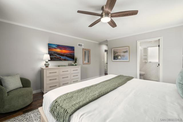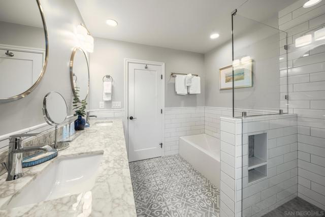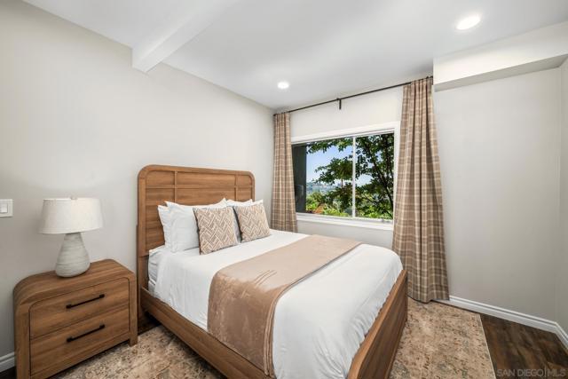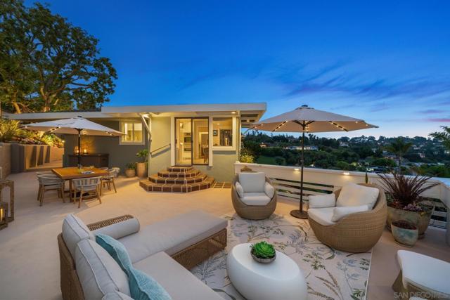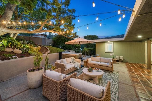 Perched above La Jolla Village, this elegant hilltop home offers panoramic ocean views, timeless architecture, and inviting spaces for a refined coastal escape. With multiple patios, a private spa, a firepit, and an upper deck overlooking the Pacific, it’s a rare retreat in one of San Diego’s most coveted neighborhoods. The main level features an ocean-facing living room with fireplace and large windows, a formal dining room with sweeping views, and a sunlit kitchen with breakfast nook and laundry room. Two king bedrooms are located on this level, each with an ensuite bathroom. The primary includes a walk-in closet and a spa-style soaking tub. The backyard is beautifully landscaped with a jacuzzi, dining table under string lights, and a grassy side yard ideal for outdoor games or relaxing in the sunshine. An upper deck just above offers unobstructed views over La Jolla and the coastline, with lounge seating and an outdoor dining area. Downstairs, a family game room includes a smart TV, foosball table, and queen sleeper sofa, plus access to a private firepit patio. Two queen bedrooms are also on this level—one with a walk-in closet, the other with backyard views—and share a full bathroom. Sleeping Accommodations (Maximum Occupancy 10): Bedroom 1 - 1 King bed Bedroom 2 - 1 King bed Bedroom 3 - 1 Queen bed Bedroom 4 - 1 Queen bed Shared Living Space - 1 Queen Sofa bed There are a total of 3 bathrooms STR-11600L TOT-659247
