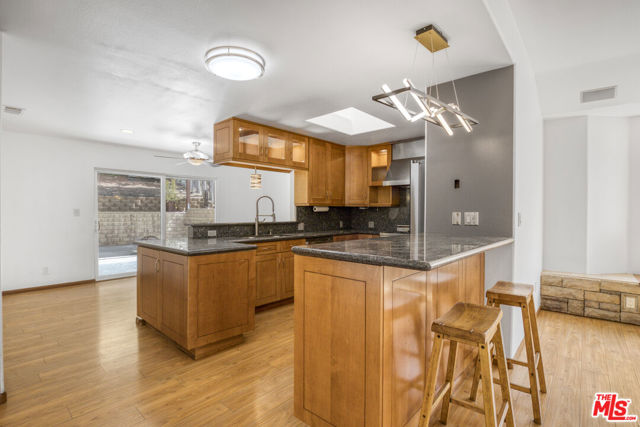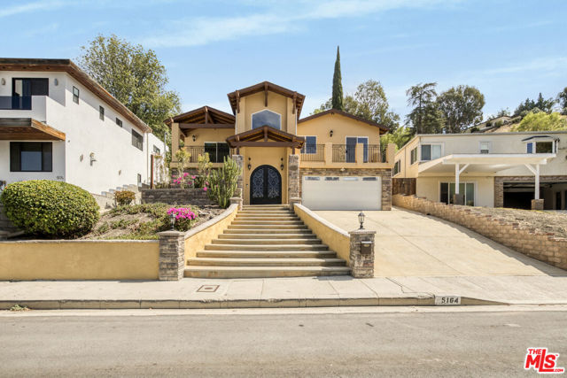 Welcome to your next home at 5164 Don Pio Drive, a refined Tuscan-style residence that blends classic elegance with modern updates. Bursting with curb appeal and nestled on a quiet hillside, this 4-bed, 3-bath gem sits on a spacious 8,000 sq ft lot, offering tranquility, privacy, and sweeping views of the lush San Fernando Valley landscape.Impressive entrance with ornate steel double doors opens to a grand staircase to the main level that opens into living area with high ceilings, balcony with view, dual fireplace shared with the formal dining room. Fully equipped kitchen with granite countertops includes an eat in island. Additional dinning area adjacent to kitchen opens up to expansive shaded patio and terraced back yard.Main level features powder room off of the kitchen, expansive primary suite, jacuzzi tub, walk in custom closet, private balcony with view. Two more bedrooms on this level with guest bath off main hallway.The lower level features an additional bedroom with private en suite bathroom with access from main stairwell as well as additional exterior private entrance through French doors and private patio. Full laundry room with sink and cabinets located on lower level. Attached 4-car garage with access through the main stairwell.Prime Woodland Hills LocationNestled at the foothills of the Santa Monica Mountains, Woodland Hills is celebrated for its blend of natural beauty, peaceful living, and convenient access to city amenities.Close to vibrant Ventura Boulevard, where cafes, restaurants, boutiques, and entertainment venuesOutdoor recreation abounds:Upper Las Virgenes Canyon Open Space Preserve offers miles of hiking, biking, and equestrian trails.Nearby Serrania Park features shaded walking paths, picnic spots, and a playground. Warner Center Park, a local favorite for picnics and seasonal events, is just a short drive away.The expansive Woodland Hills Recreation Center (Shoup Park) includes sports fields, courts, a swimming pool, and playgrounds.MoveGreenFor sweeping views, the Top of Topanga Overlook offers panoramic sights of the hills and valley.