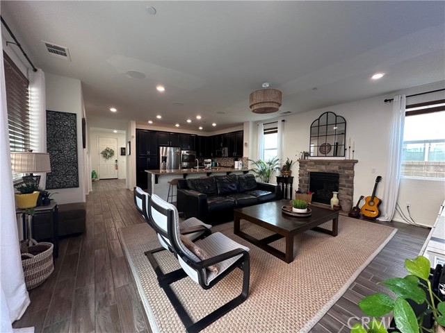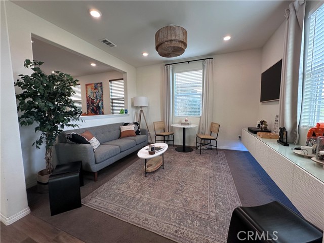 This beautiful VIEW HOME has everything and located in a desirable Valencia neighborhood ! Open-concept living areas, and high-quality upgrades throughout. BUILT 2015! SOLAR SYSTEM keeps monthly energy cost low ! ELECTRIC VEHICLE CHARGING OUTLET 240 VOLT! AWARD WINNING SCHOOLS NEARBY! WALKING DISTANCE TO SHOPPING CENTERS! CLOSE TO FREEWAYS! It features spacious 4 bedrooms, 3.5 bathrooms with 1 DOWNSTAIRS BEDROOM & full bath, UPSTAIRS LOFT/Bonus area. Upgraded tile flooring throughout downstairs level and all bathrooms, spacious family room with a cozy fireplace, gourmet kitchen with granite countertops, large island, stainless steel appliances and ample cabinetry. In-ceiling speakers in Great Room, ceiling fan, wood decks in backyard and BALCONY. THREE CAR attached GARAGE. Beautiful view of the large, open field just across the street. Walking distance to West Creek Academy and Rio Norte Jr. HS. Three resort style community pools, spa and clubhouse, plus park with sport facilities! Must see !