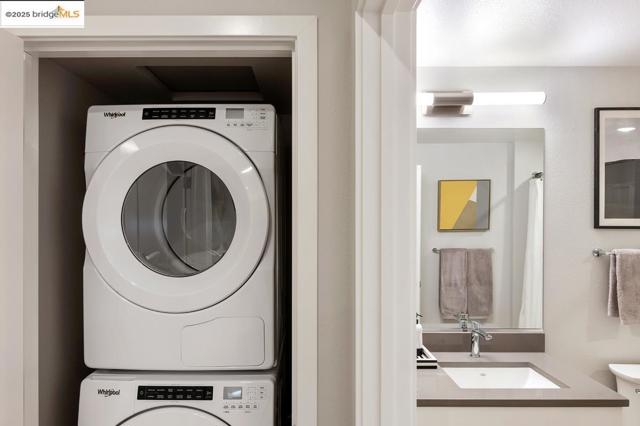 Now Selling at Caspian Residences at Brooklyn Basin - Discover modern waterside living in this thoughtfully designed 1-bedroom, 1-bathroom condo, spanning approximately 736 sq ft. Located in one of Oakland’s most exciting new communities, this home offers a rare chance to own in a vibrant, amenity-rich setting. The open layout features sleek finishes, a well-equipped kitchen with Samsung stainless steel appliances, quartz countertops, and modern cabinetry. High-efficiency dual-pane windows frame the bright living area, while the bathroom includes quartz counters and Grohe fixtures. Includes in-unit washer and dryer. Caspian residents enjoy a fitness center, a dedicated co-working space, landscaped courtyards, a game room, and rooftop lounges with panoramic views. Situated on Oakland’s revitalized waterfront at Brooklyn Basin, the community provides direct access to parks, dining, and recreation, with Jack London Square, BART, and ferry service to San Francisco just minutes away. Includes one parking space. All images are representative of the development and may be of a similar unit.