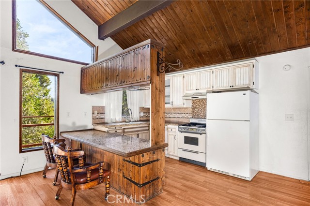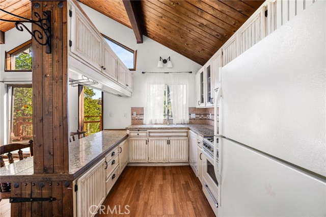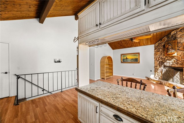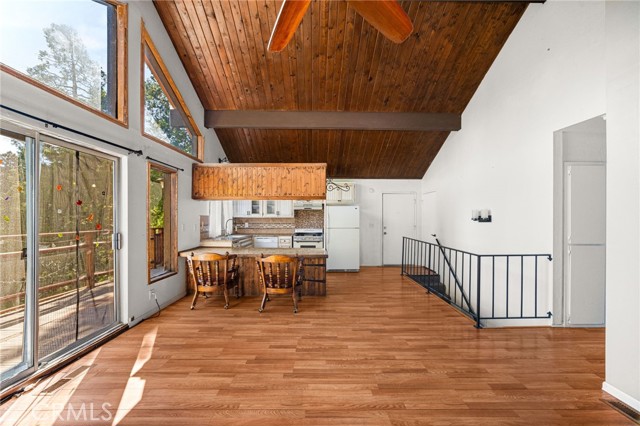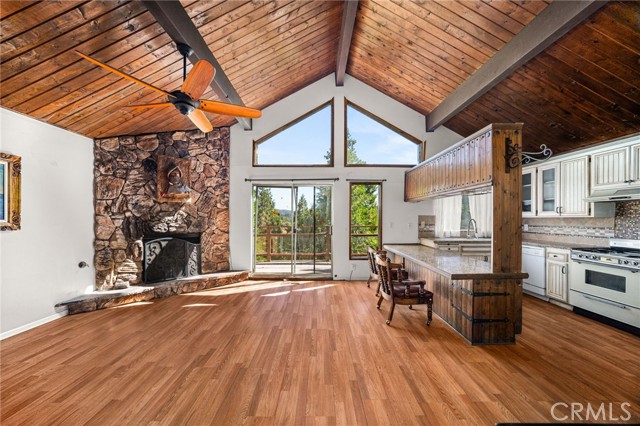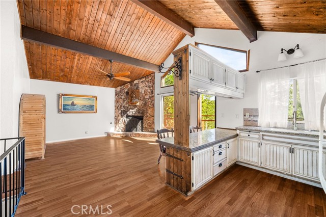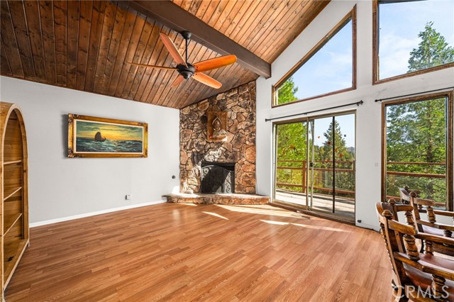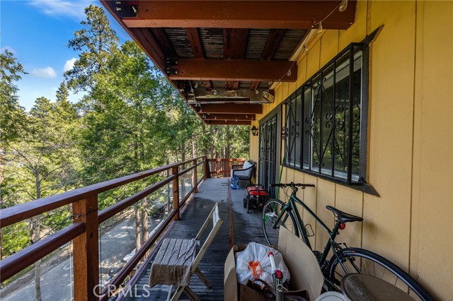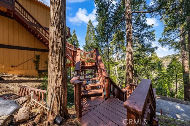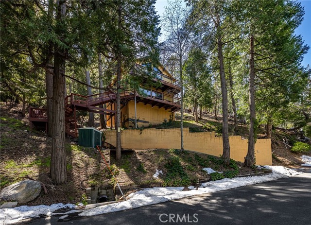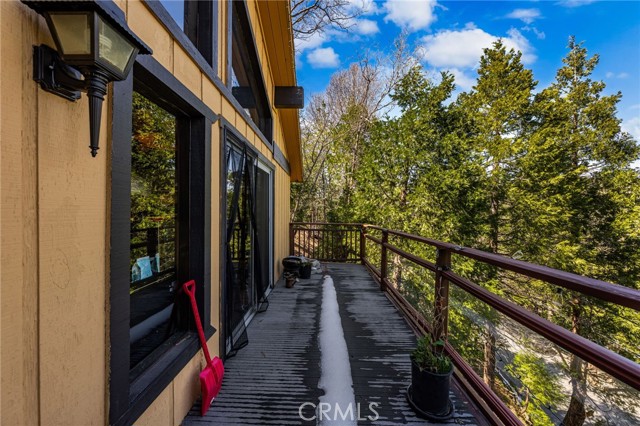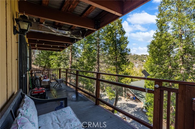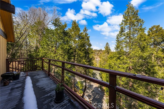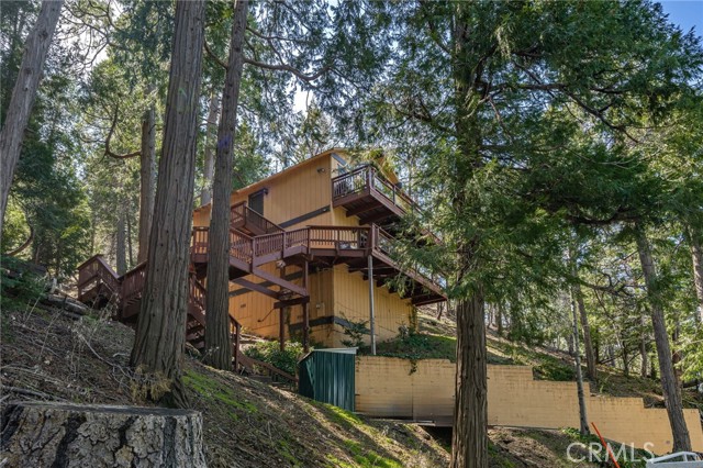 Welcome to your serene mountain sanctuary! Nestled in the picturesque community of Crestline, this inviting retreat perfectly blends rustic charm with modern comfort. Step inside to a bright, open-concept kitchen and dining area, where soaring vaulted ceilings and a cozy stone fireplace create the perfect ambiance for entertaining or relaxing after a day at the lake. Vaulted wall windows and oversized sliding glass doors frame breathtaking views of the surrounding forested landscape and Crestline Lake, flooding the home with natural light and connecting seamlessly to the upper balcony—ideal for morning coffee or sunset wine. Downstairs, a spacious and tranquil living area awaits, alongside generously sized bedrooms and a beautifully updated bathroom. Step out onto a second expansive balcony and take in the peaceful sounds of nature—this is mountain living at its finest. Just a short walk to Crestline’s charming town center, including Goodwin & Sons Market, local eateries, the library, and scenic Lake Gregory, you’ll have both convenience and adventure at your doorstep. Bonus: This sale includes two additional adjacent lots—one on each side of the home—offering extra privacy, usable space, or future development potential. Whether you’re looking for a peaceful full-time residence or the perfect weekend escape, this unique property is your opportunity to own a slice of mountain paradise.