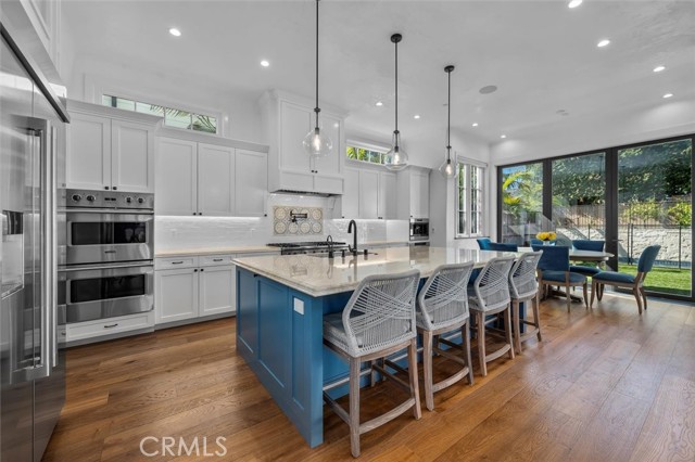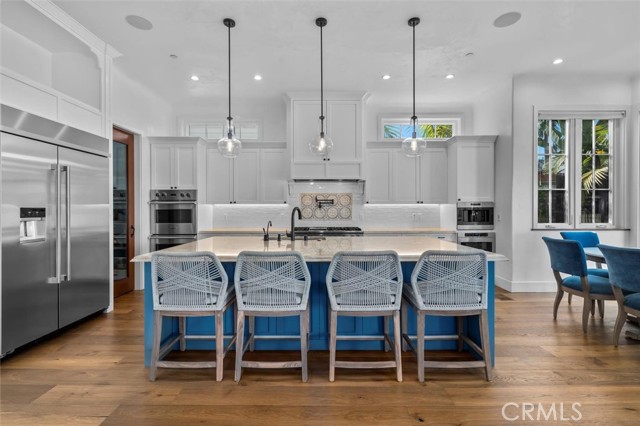 Rare East Manhattan Beach masterpiece where timeless elegance meets modern luxury. Built in 2021 by esteemed custom builder Patrick Kealy, on a coveted corner lot with a landscaped yard and white picket fence set the stage for timeless curb appeal. With 6 bedrooms, 6.5 bathrooms, a finished basement and approximately 5,738 SQFT (BTV) of living space on a 7,449 SQFT lot (BTV), this home offers scale without sacrificing warmth. Soaring ceilings and an open-concept floor plan flood the home with natural light and are enhanced by dramatic bi-folding doors that open seamlessly to a private backyard oasis—featuring a pool, spa, built-in Wolf BBQ and a custom Korean BBQ—creating the ultimate indoor-outdoor California lifestyle. The heart of the home is a chef’s kitchen featuring top-of-the-line amenities with exquisite finishes, a walk-in pantry, stainless steel Viking appliances including double ovens, a bonus warming drawer, and a Wolf built-in espresso maker. The lower level offers a full basement with a full bar equipped with ice maker, refrigerator, and dishwasher perfect for a media room, playroom or a gym, complete with a guest suite. The upper level finds the majority of the bedroom suites, each with its own en-suite bathroom vaulted ceilings, and custom closets. The primary suite is like a retreat with a romantic fireplace and spa like primary bath. Located in one of Manhattan Beach’s most desirable neighborhoods, East Manhattan Beach offers larger lots, larger homes, and close proximity to award-winning schools and parks. This residence is the Complete Family Retreat – a home that gives kids space to play, parents space to entertain, and everyone space to unwind. Only 15 minutes to LAX