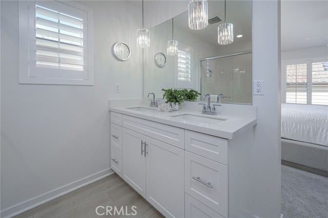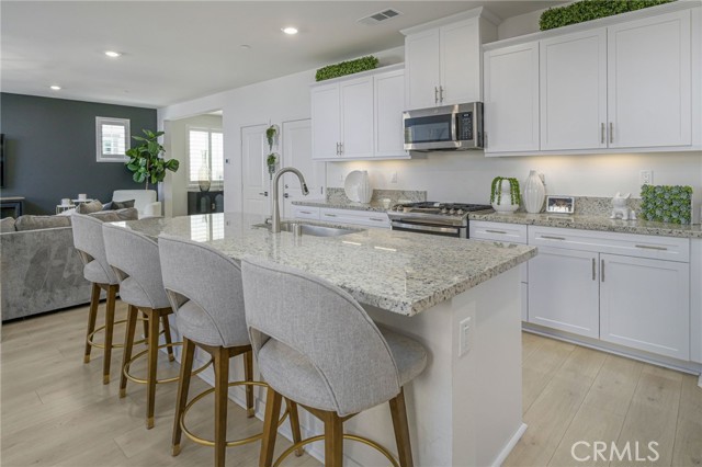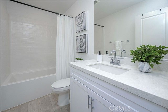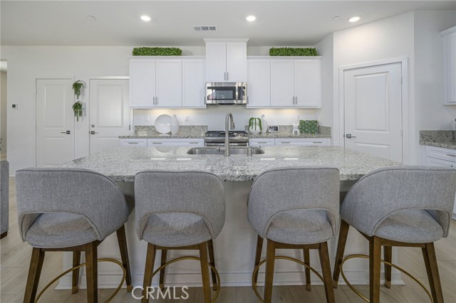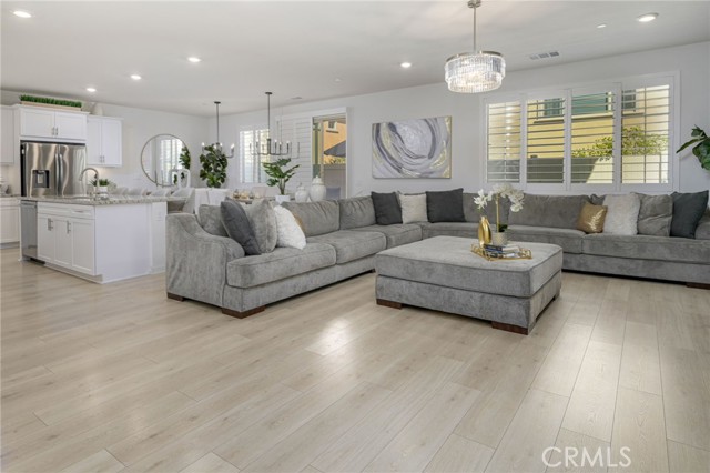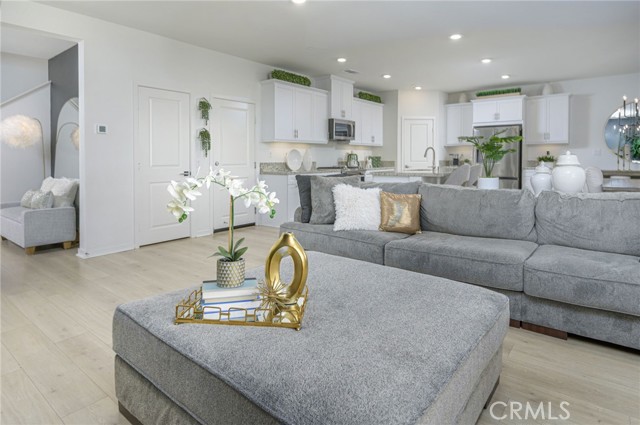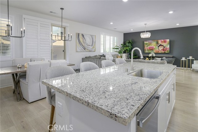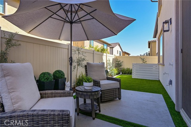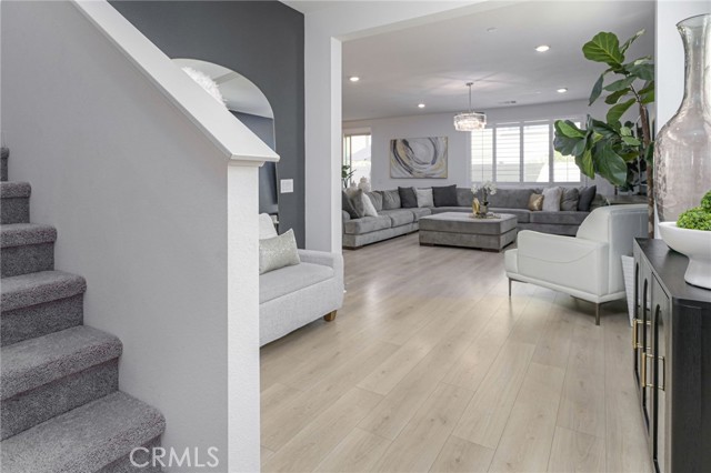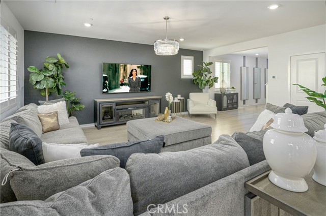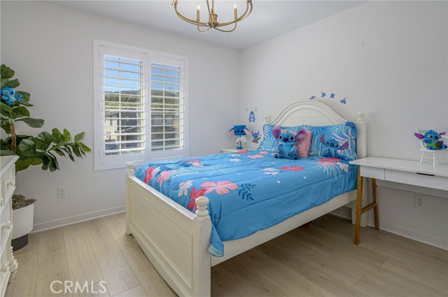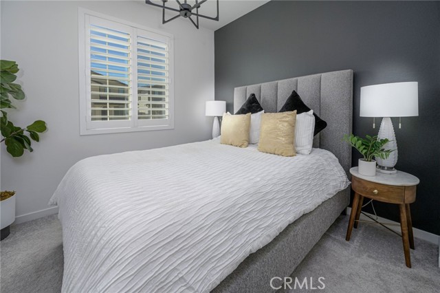 Highly upgraded 4 bedroom property in the gated community of Bedford, this spacious and modern home offers 4 bedrooms +loft and 3 bathrooms. Great floorplan: a main floor bedroom and full bathroom, ideal for multi-generation family; Huge family great room open to kitchen and dining space; On the second floor, generous primary suite with mountain view has dual vanities, large walk-in shower and walk-in closet, and the other two bedrooms, laundry room and big loft space with fantastic TV and sound system, creating theatre feeling at home. Lots of high quality upgrades: custom lights, elegant plantation shutter, handsome wood laminate floor, gorgeous kitchen making you chef experience, well designed and low maintenance backyard. Resort like community amenities: a Fitness Studio, Self-Serve Dog Spa, Event Lawn for Outdoor Movies, Fit Play Park, Firepit, Outdoor Lounge and 75-foot Saltwater Lap Pool with Shaded Deck…… Outside the community wall is the marketplace with Starbucks, Amazon Fresh, Shopping, Dining, banks, Gas & More. Easy Access to the 15 Freeway. Great schools in this area. Paid off solar panel will reduce your electricity bill a lot. This home will not last long, so come to see soon.