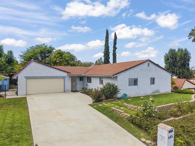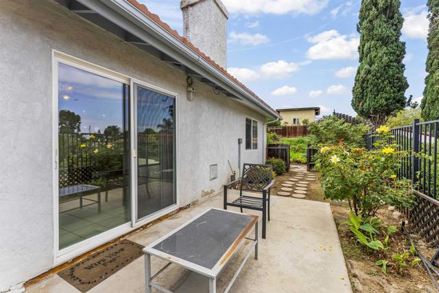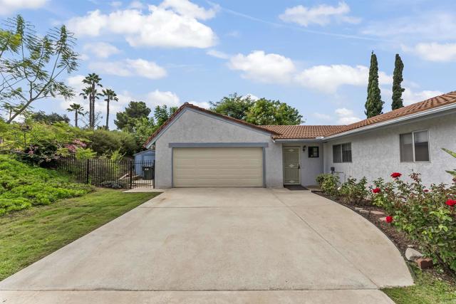 This charming single story corner unit offers comfort and privacy on a quiet street. Features include a classic clay tile roof, carpet and tile flooring, an open kitchen and dining area, and a cozy fireplace perfect for relaxing evenings. The home also includes a spacious laundry room and a peaceful backyard surrounded by mature landscaping ideal for outdoor enjoyment. Conveniently located near North County Mall, Kit Carson Park, and Palomar Medical Center, with schools like Orange Glen Elementary, Hidden Valley Middle, and Orange Glen High just minutes away, this home combines everyday comfort with easy access to shopping, dining, recreation, and top local amenities.