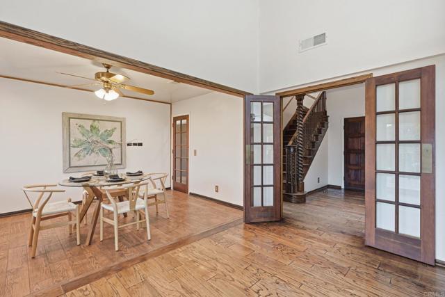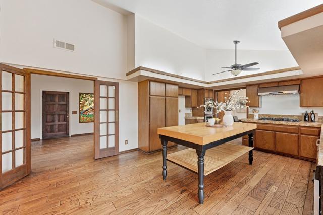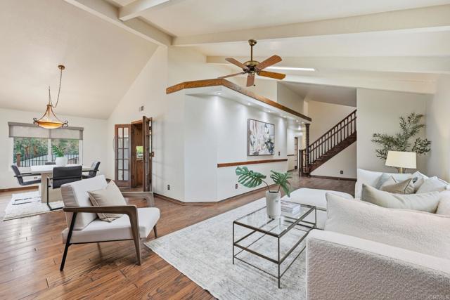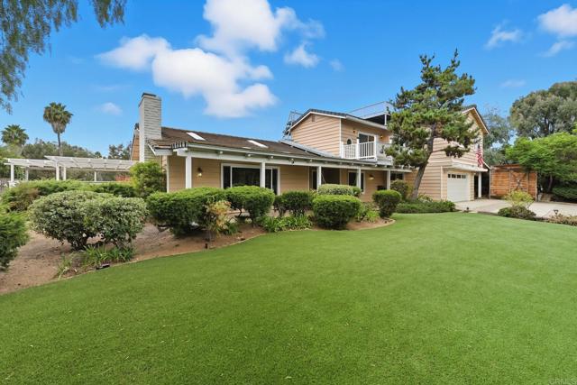 This home has it all! Charming 4 bedroom + office 3 bath 2963 square foot home on 1.09 acres located on a quiet cul de sac in the heart of Olivenhain. The possibilities are endless. Great entertaining home with a sparkling pool, spa, large deck overlooking the lower portion of the lot with a beautiful country setting includes a large barn / workshop, fruit orchard, horseshoe pit, and plenty of room to garden. Large primary bedroom & bath located on the first level with private patio. Chef’s kitchen with huge center island, oversized pantry, double oven, and granite counters. Two secondary bedrooms upstairs, along with a large room which was used as an office but could also be game room/kids area. Gently sloping front yard with an easy turf lawn offering greenery all year long. There is an attached 2 car garage and an additional adjoining covered carport for all your parking needs. Enjoy this great rural location yet only minutes to town and shopping, restaurants, easy freeway access and the Beach. This property offers something for every member of the family especially those interested in equestrian, trails, and hiking.