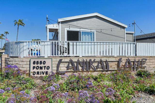 Discover the Beach lifestyle in this upscale gated Manufactured Home Community. Across from Ponto Beach and South of Carlsbad State Beach. Beautiful Bright 1 bd + bonus room, 1 bath home. 5 burner gas top/oven range, microwave, dishwasher, double wide refrigerator w/water & ice dispenser on door, built-in office area, stackable washer/dryer. Enjoy our beautiful sunsets from the spacious front porch or just relax in the small back yard. 2 sheds, gated 3 car parking. Located across from the club house & heated pool. Easy access to the Coaster Platform. Plenty of guest parking. Verify Sq Ft COE