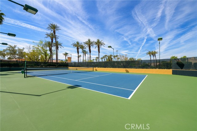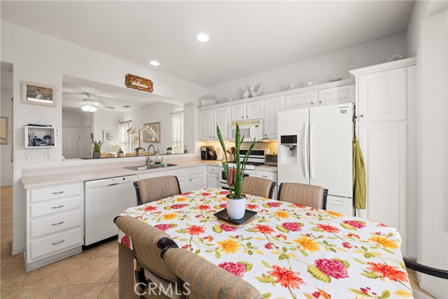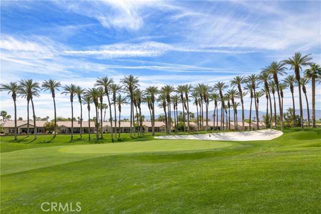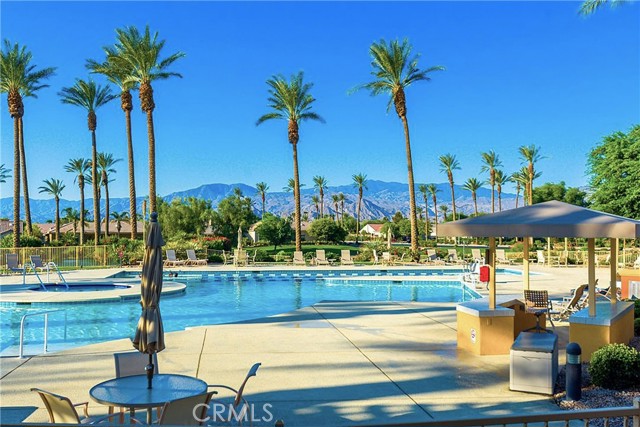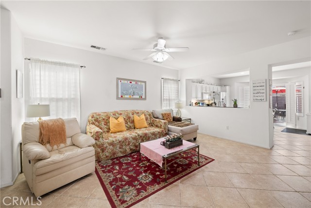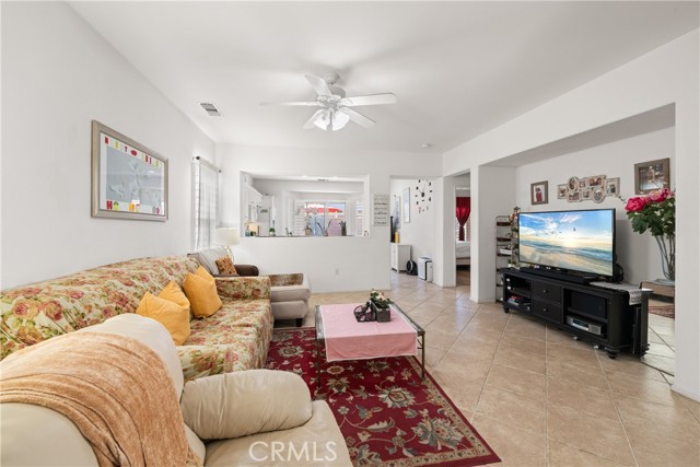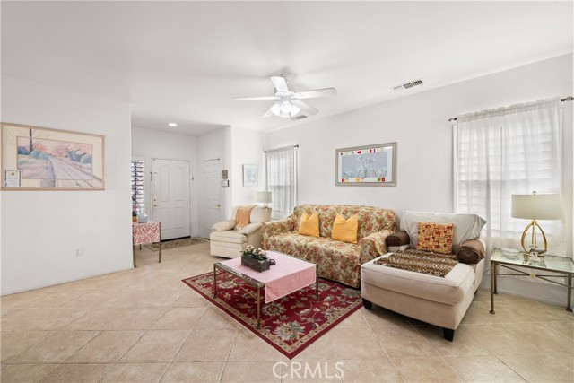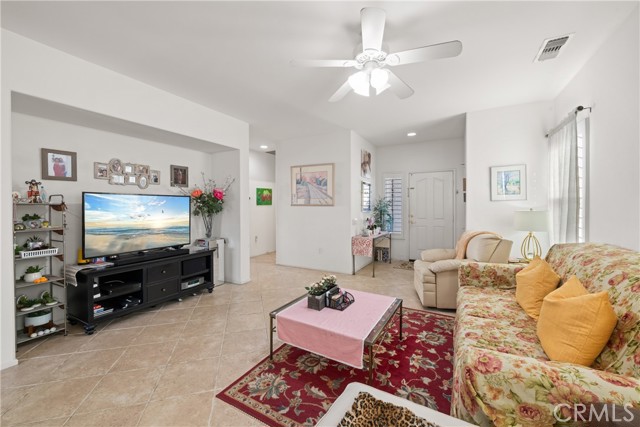 Experience Desert Living at Its Best! Discover comfort and style in this beautifully maintained single-story, two-bedroom, two-bath home offering a bright and open floor plan designed for easy living. Tile flooring flows throughout the main living areas, while luxury vinyl plank flooring in both bedrooms adds warmth and elegance. Plantation shutters, ceiling fans, and a newer A/C and furnace (installed in 2018) ensure year-round comfort. The kitchen and living spaces open seamlessly to a private outdoor patio with an aluminum cover — perfect for relaxing or entertaining. Additional highlights include extra garage cabinetry for storage, and the refrigerator, washer, and dryer are all included for added convenience. Located within the award-winning Sun City Palm Desert, a premier guard-gated 55+ active adult community, residents enjoy resort-style amenities including 36 holes of championship golf, three clubhouses, two state-of-the-art fitness centers, five heated pools and spas, and 20 pickleball and tennis courts. Scenic lakes, waterfalls, and mountain views set the backdrop for over 80 clubs and social groups, along with a spacious community center and on-site dining at the community café and restaurant.