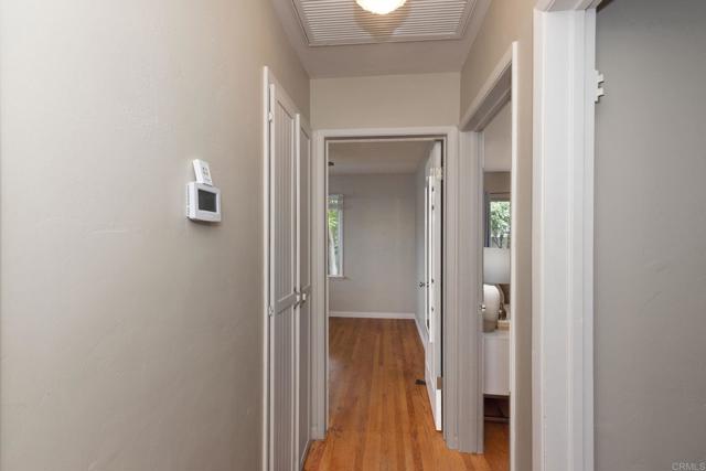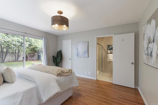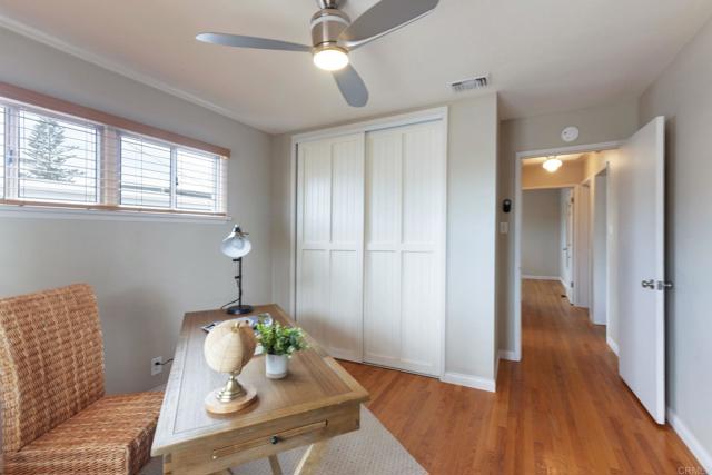 South Oceanside single story gem with lovely wood floors and a raised hearth fireplace in the living room exuding charm and coziness. The master bedroom has a sliding glass door opening to a spacious redwood deck to enjoy the beautiful and private back yard with large avocado and citrus trees. Fully paid solar (NEM 2.0), plus EV charger. Air conditioning and furnace installed in the last few years. Attractive low maintenance landscaping in the front yard with great curb appeal. Walking distance to South Oceanside Elementary School. Very open kitchen and dining room combo with ample windows looking into the trees and back yard. Cute large storage shed in the back and additional parking space in the front. Enjoy this immaculate home in a wonderful South Oceanside neighborhood west of I-5 and close to the beach. Great location.