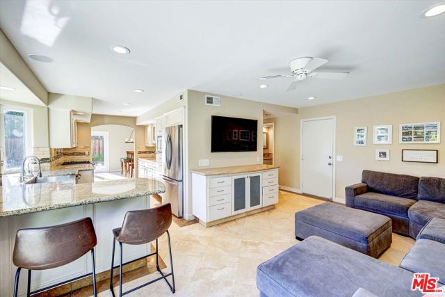 Tucked on a quiet cul-de-sac, this light-filled home blends comfort and function. A wide driveway welcomes you to an open, fantastic floor plan with travertine floors, recessed lighting, and abundant built-in cabinetry for effortless storage. The kitchen opens to the living area with a breakfast bar great for everyday dining or entertaining. Sitting on a large lot, the property offers storage areas on both sides of the home and an expansive backyard with room to relax, play, or garden. Close to shopping, parks, beaches, and freeway access.