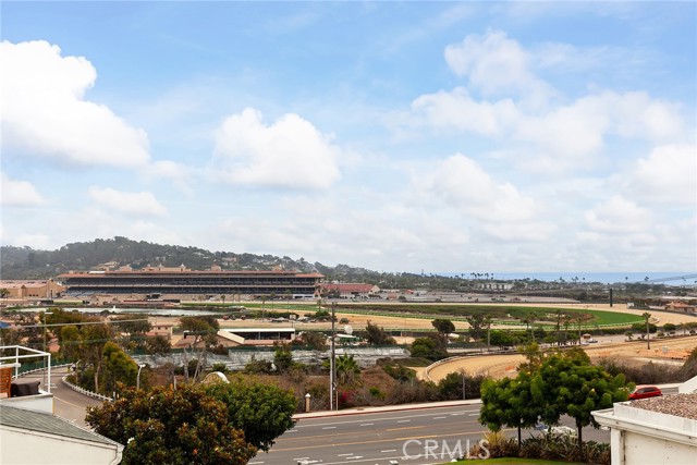 Welcome home to this gorgeous, light, bright and turn-key, end-unit townhome! Featuring expansive 180-degree panoramic views, spanning from the lush hillsides eastward, to the Del Mar Racetrack southward, and finally to the breathtaking white-water ocean vistas of “Dog’s Beach” westward. The open living room is engulfed in natural light with large windows and skylights, complemented by a cozy fireplace. The adjacent dining area offers equally majestic views and opens onto a sitting balcony perfect for enjoying ocean views and breezes. The gourmet kitchen features granite counters, a Bosch dishwasher, KitchenAid appliances, and recessed lighting, all overlooking the hills and racetrack. Downstairs, the primary bedroom features plantation shutters, with a walk-in closet and a primary bath adorned in crema marfil marble with a glass block walk-in shower. A second ensuite bedroom features oak wood floors, plantation shutters, and an updated bathroom with crema marfil marble. Additional highlights include a detached 2-car garage with washer/dryer, immediate access to a pool, spa, and exercise room, and a convenient lock-and-leave design. Situated in the esteemed Saratoga West community, this townhome offers an exceptional location just steps from the beach, Cedros design district, restaurants, library, shops, and renowned Solana Beach schools. If you are looking for luxury, convenience and a quintessential San Diego lifestyle, this is it!