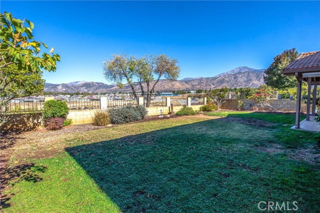 Spacious two-story single-family residence offering 4 bedrooms, 3 bathrooms, and approximately 2,487 sq ft of interior living space. Located in a desirable Yucaipa neighborhood, this home provides a functional layout with defined living and dining areas, a separate family room, and scenic mountain views from multiple vantage points. The kitchen features ample counter space, cabinetry for storage, and access to the dining area, creating an efficient space for daily use. One bedroom and full bath is conveniently located on the main level, suitable for guests or home office needs. The upper level includes the primary suite with an attached bath, dual sinks, new tile shower, spacious closet, and extra-large bonus room/den, along with two additional bedrooms and a shared hall bath. The backyard offers a covered patio and open space ideal for outdoor seating while enjoying the surrounding foothill scenery. Additional highlights include an attached two-car garage with laundry hookups, and central heating and air conditioning. Positioned near local parks, schools, and shopping with easy access to Yucaipa Blvd and I-10 for commuting.