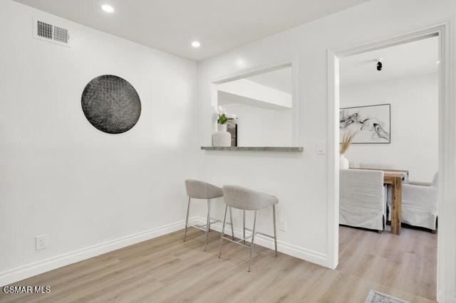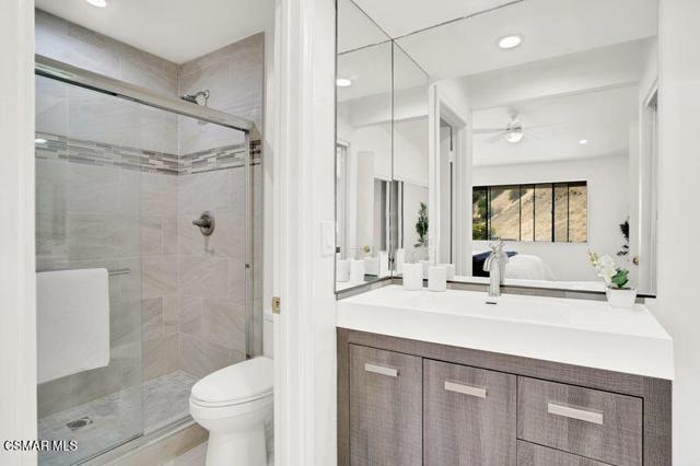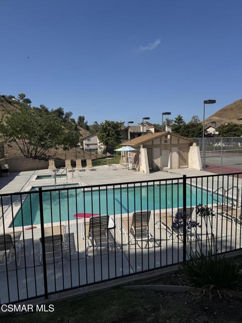 Beautifully remodeled 3 bedrooms plus 2 1/2 bathroom in neutral colors. New wood like floors, LED recessed lights throughout, new kitchen white cabinets with gold pulls and rich quartz counters. Dishwasher, microwave and stove are brand new. Refrigerator is newer and included. Bathrooms include new sinks and cabinets. Large primary bedroom with ceiling fan and light. 2 closets. Secondary bedrooms all upstairs. Lovely balcony off the living room facing pool/spa and tennis courts. Gorgeous view of hillside. 2 car garage with direct access into property. New epoxy floor too. Close to freeway, canyon, Beach, shopping and restaurants. Desirable neighborhood in Calabasas. Acclaimed Las Virgenes School District.
