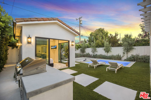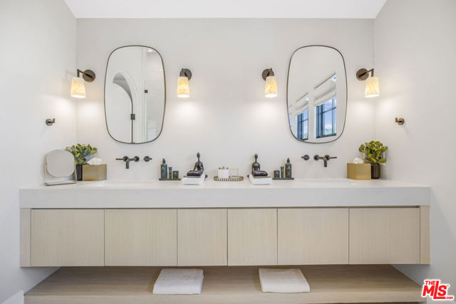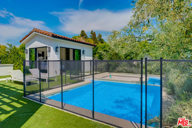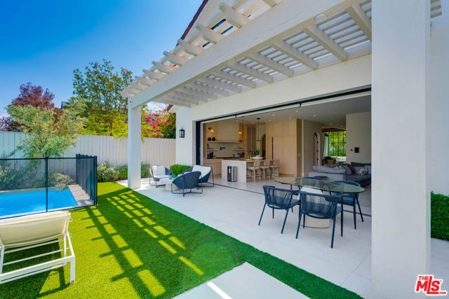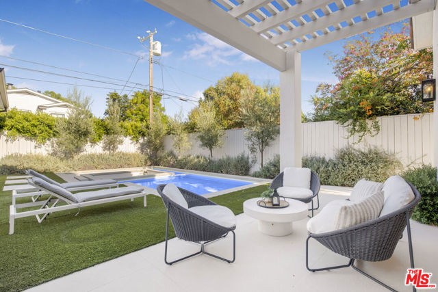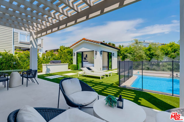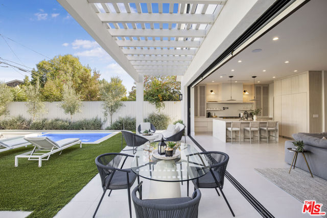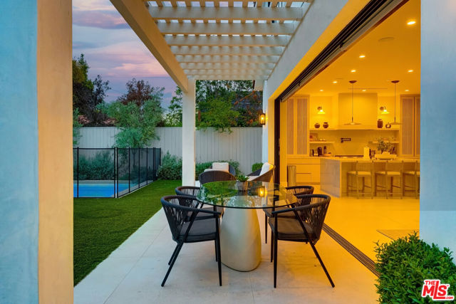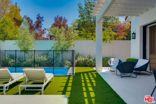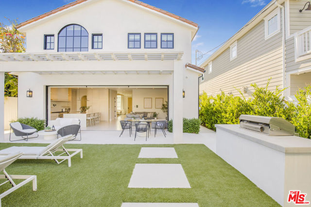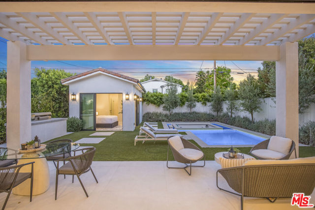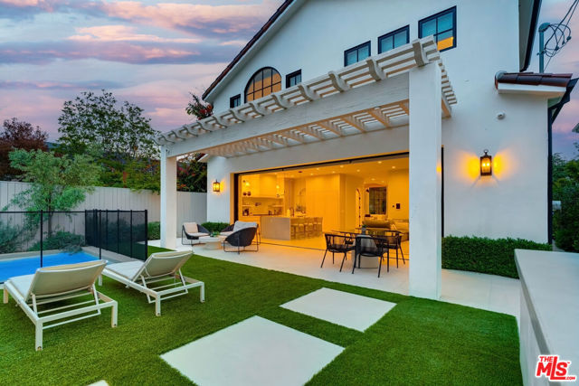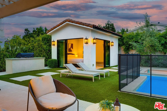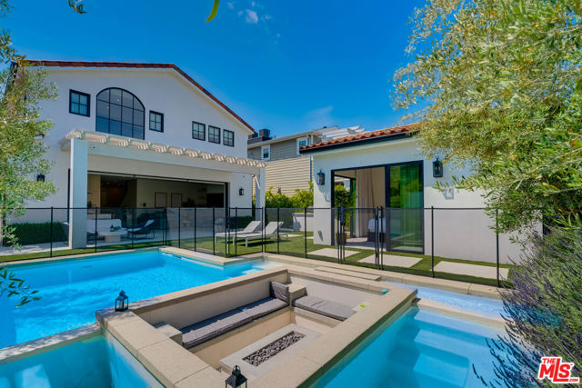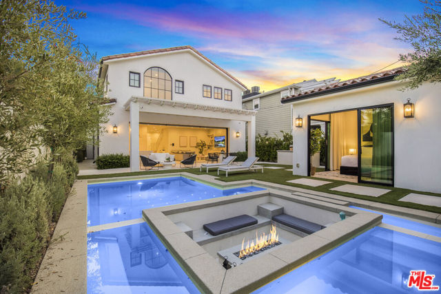 This property is available for short-term and long-term rentals, each with its respective pricing options. It is fully furnished, decorated, and equipped with hotel-like essentials and amenities. With our concierge team available to assist 24/7, this home rental offers a five-star hospitality experience, whether you are staying for a few days, a month, or a year. This residence is a serene retreat in one of LA's most sought-after areas, blending comfort, elegance, and opportunity. Featuring five spacious bedrooms and five and a half luxurious bathrooms, the Mediterranean-style villa showcases timeless design with white stucco walls, terracotta roof tiles, and modern black-framed windows. Hardwood floors flow throughout, with natural light pouring into the inviting living spaces. Large sliding doors connect the indoors with the beautifully landscaped outdoor area, which includes a serene pool, fire pit lounge, and manicured lawn. Located near top schools, trendy shops, and gourmet dining, this home offers both tranquility and vibrant city living.