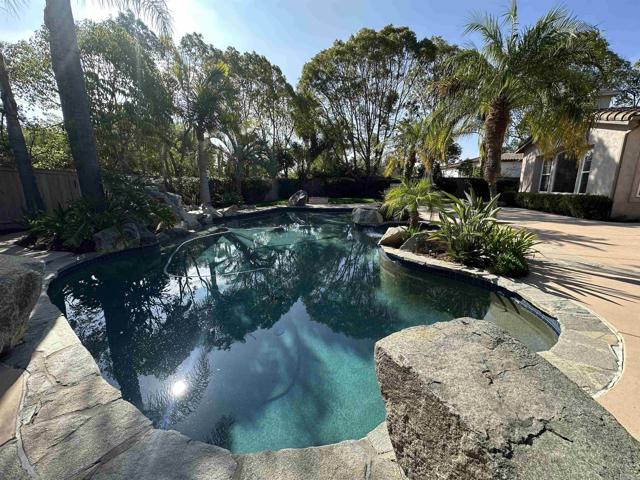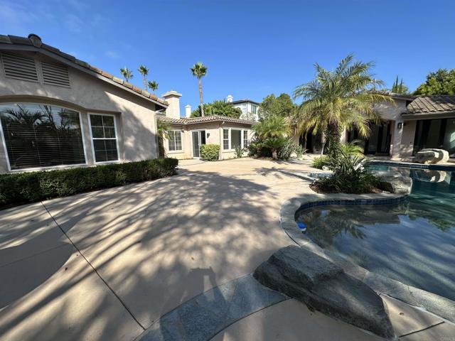 Discover luxury coastal living in this beautifully updated single-story estate featuring 5 bedrooms, 3.5 baths, and 4,412 sq. ft., plus a detached 1-bedroom guest house with an office/gym, full kitchen, and bath (approx. 750 sq. ft.). Stylish upgrades throughout include luxury vinyl plank flooring, fresh interior paint, recessed lighting, new baseboards, and a fully renovated primary bathroom. The chef’s kitchen impresses with a massive center island, Sub-Zero refrigerator, Wolf gas range, Bosch double oven, Sub-Zero wine fridge, and large pantry. The open-concept layout flows effortlessly between the family room, dining room, and living room—perfect for both entertaining and everyday living. Step outside to your own private resort-style backyard with a sparkling pool and spa, soothing water feature, pool solar, built-in BBQ, and lush tropical landscaping—an entertainer’s dream. Additional features include a laundry room with sink and cabinetry and an attached three-car garage with epoxy flooring. Located in the highly sought-after Country Eloquence community, this home offers proximity to top-rated schools, shopping, dining, and Encinitas’ beautiful beaches. The detached casita offers the perfect retreat for guests, family, or a private workspace. Experience the perfect blend of coastal elegance, comfort, and timeless design in the heart of Encinitas.