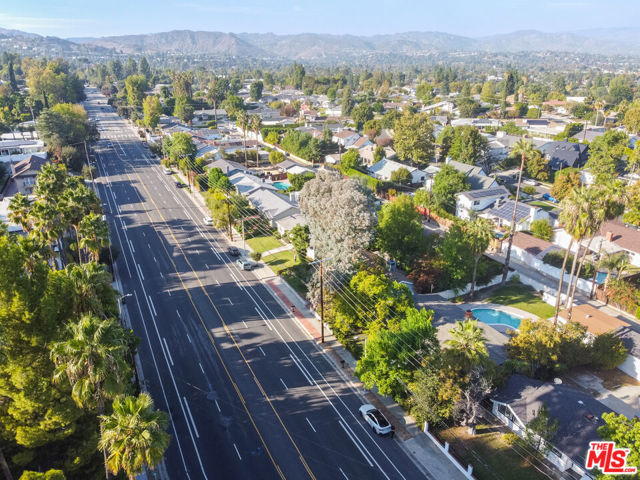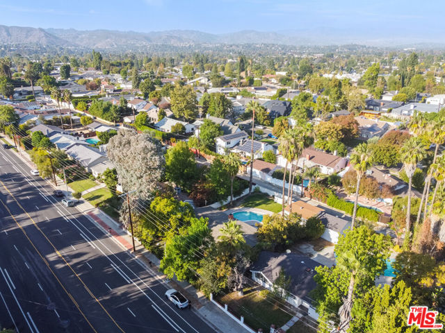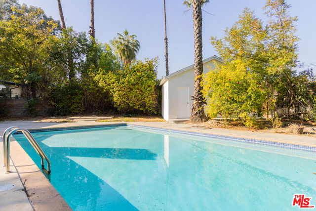 Experience the charm and ease of single-story living in this beautifully maintained residence offering 3 spacious bedrooms and 2 full baths across 1,684 square feet of thoughtfully designed interiors. The living room welcomes you with soft natural light and a timeless fireplace that anchors the space. The kitchen, accented by custom backsplash detailing and generous cabinetry, flows seamlessly into a cozy dining nook perfect for relaxed mornings or evening unwinding. Step outside and relish in your own backyard oasis featuring a resort-style pool, and expansive grounds ideal for outdoor entertaining. With a detached two-car garage and convenient alley access, every detail has been considered. Perfectly positioned near El Camino High School, Calabasas, and premier shopping and dining at The Village, this home offers the best of comfort and California lifestyle.