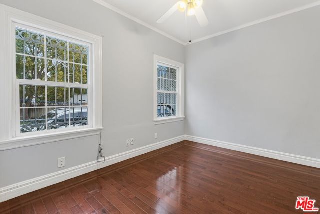 Step into timeless elegance and modern comfort in this beautifully maintained lower 2-bedroom, 1.5-bath residence, located in the highly desirable Beverly Grove neighborhood. This enchanting Colonial-style duplex exudes old-world charm and character, seamlessly blended with contemporary updates and an abundance of natural light that fills every corner of the home. The spacious living room welcomes you with its large picture windows, rich hardwood floors, and graceful architectural details that speak to the home's classic heritage. A formal dining room offers the perfect setting for entertaining. The updated kitchen is both functional and stylish, featuring granite countertops, ample cabinetry, and a convenient laundry room with washer/dryer hookups. The remodeled main bathroom features a walk-in shower, while the primary bedroom includes a charming bay window and a private half bath for added convenience. Additional features include central heating and A/C, a lovely front patio perfect for morning coffee or evening relaxation, and one gated parking space for security and ease. Perfectly situated in one of Los Angeles' most sought-after areas, this home offers unbeatable proximity to The Grove, LACMA, the Beverly Center, Beverly Hills, and some of the city's best dining, shopping, and entertainment. Available now.