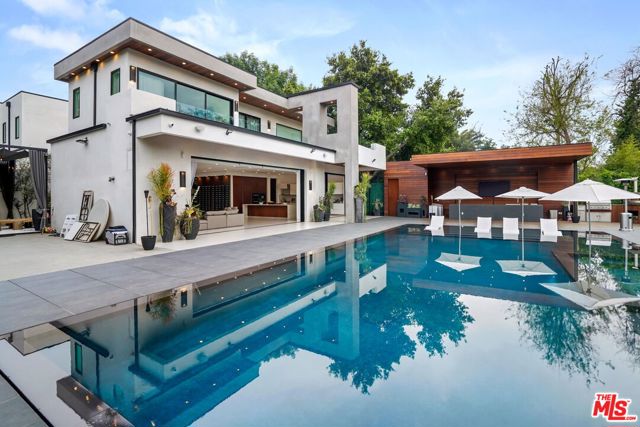Experience Resort-Style Living in the Heart of TarzanaDiscover modern California luxury in this breathtaking 5-bedroom, 6-bath architectural estate, quietly tucked away in Tarzana's serene hills. Designed for seamless indoor-outdoor living, the home captures natural light at every turn and pairs clean, contemporary design with warm, livable sophistication.Step into your own private resort. Lounge beside the infinity-edge pool, unwind in the cabana, or gather by the fire features as the sun sets. Entertain effortlessly with a custom outdoor kitchen and wood-fired pizza ovenperfect for hosting unforgettable evenings with family and friends.For recreation and relaxation alike, enjoy your own personal soccer field and a state-of-the-art home theater designed for the ultimate cinematic experience. Behind the gates, this sanctuary offers complete privacy while remaining just minutes from Ventura Boulevard's top dining, shopping, and entertainment. A rare blend of elegance, comfort, and lifestyle. This is California living at its finest.