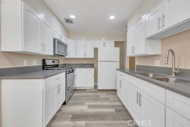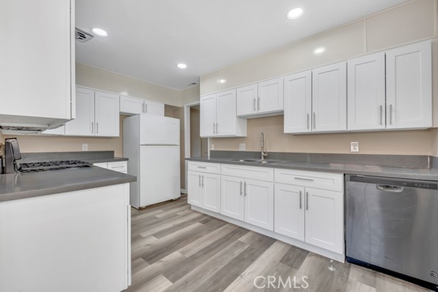 This beautifully remodeled single-story home is ready for you! Featuring brand new AC and heating, a completely upgraded kitchen with granite countertops and stainless steel appliances, and ample new cabinet space. The entire home has been updated with stylish laminate flooring, and the bathrooms have been meticulously renovated with tile finishes. Conveniently located near schools and with easy freeway access, this home also offers a spacious 2-car attached garage, plus plenty of parking in the driveway and on the street. Landscaping service is provided by the landlord; tenants are responsible for all utilities. Call regarding pets.