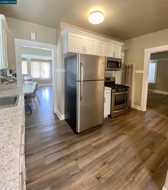 Newly Remodeled Single Story. 2 Bedrooms, 1 Bathroom, Approx. 950 Sq. Ft. Family Room. Large Dinning Room. Eat-in-kitchen/Nook. Laundry room with new stack washer & dryer. Newer Flooring. Fresh Paint. Upgraded kitchen. Faux wood blinds. Heat & Air. 1 car garage. Large Fully fenced yard. Great location near schools, parks, restaurants. Close proximity to freeway & BART for easy commute. 2 homes on one lot. Front door is located on 1112 Black Diamond. Apply with RentSpree https://apply.link/Z-itKsY