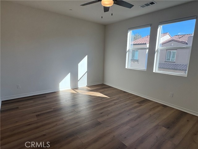 Location! Location! Location! Welcome to Verdana Gated Community! Built in 2024, this larger floor plan offers THREE EN-SUITE bedrooms with one of the three bedrooms on the first level and the other two En-Suites located on the third floor. The whole condo has luxury vinyl wood flooring throughout. The second floor you have your half bath, full kitchen with newer LG washer/dryer in the closet, dining area and living area that leads you to a private balcony. The balcony overlooks into the courtyard. The kitchen is equipped with stove/oven, microwave, dishwasher, water filtration system dispensed at the sink and a newer Samsung refrigerator. The two car side by side garage has direct access to the living space. The community offers a well manicured courtyard with seatings and charcoal BBQ community space. This middle unit condo includes solar panels, tankless water heater, Tesla EV charger in garage and RING camera doorbell for your convenience. The unit is in close proximity to the 210 Freeway, Historic Route 66, Trader Joes, Target, other shops, Restaurants, and Bonita Schools.