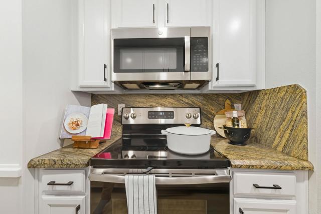 Welcome to your serene retreat at 1750 South El Camino Real, Unit 211, in vibrant Encinitas. This charming top floor 1-bedroom, 1-bathroom condo, spanning 650 square feet, promises a modern living experience with recent updates that enhance both style and comfort. Step inside to discover new flooring, paint, lighting and accessories that complement the contemporary appeal. Relax and unwind by the cozy fireplace. Or practice your cooking in the kitchen which is a culinary haven, featuring sleek stainless steel appliances, newly painted cabinets, and elegant granite countertops. Enjoy your morning coffee on your private balcony. This property offers you the best location in the complex for peace and tranquility surrounded by trees with no street noise from El Camino Real. This home is a gateway to leisure and convenience. Unwind at the pool, practice your serve on the tennis courts, or take a leisurely stroll through the complex or to the nearby lagoon and beaches. With easy access to the freeway, shopping, and dining, everything you need is right at your doorstep. Experience the perfect blend of coastal charm and modern comfort in this ideally located, peaceful abode. Don't miss the opportunity to make this delightful condo your own!