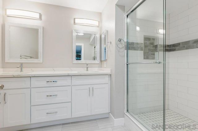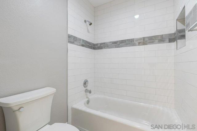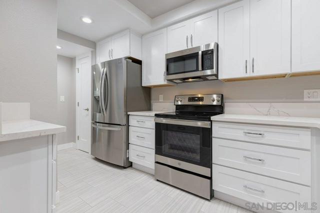 This 2Br/2Ba condo has undergone a top to bottom renovation in 2021, and is again ready for a new occupant! Beautifully redesigned in neutral designer colors, this 1250sqft condo offers waterproof vinyl floors throughout, an open kitchen with granite counter tops and brand new appliances, accented tiles in both bathrooms, recessed lighting, in-unit laundry, an enclosed balcony area for extra space and storage, and the right to park 2 cars in the security garage. The complex also features a pool, spa, and a BBQ area, as well as a separate room to store bikes. Overlooking a gorgeously landscaped common area courtyard with a pond, the location of this particular unit offers the best of both worlds as it is quiet and serene, yet, also close to all the restaurants and shops of Ocean Beach, the beaches and the freeway.