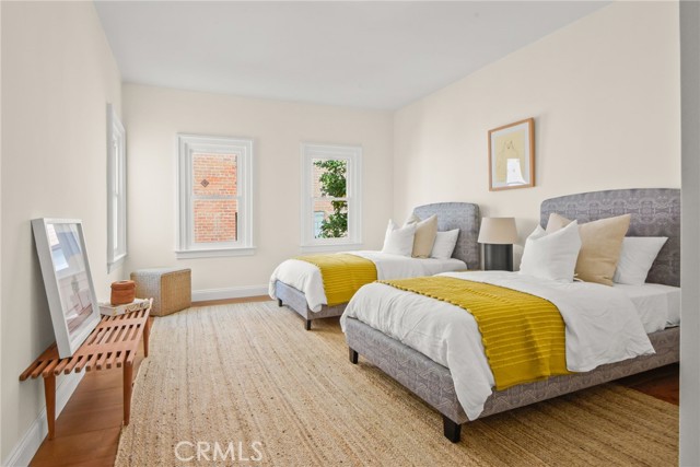 Remodeled 2025 Mediterranean Revival–style condo located in a private, gated community of only four units in Los Angeles Wilshire Center Area ~ Set above the street on an up-slope lot, this home offers a secluded and secure setting with an automatic swing gate for entry ~ Thoughtfully updated with modern materials while preserving original architectural charm ~ Features include 9-foot ceilings throughout, brand-new electrical and plumbing systems, and custom cabinetry with high-end appliances ~ The formal dining room opens through French doors to a private balcony, providing great indoor/outdoor flow ~ This spacious unit offers 3 bedrooms, 3 bathrooms, along with a separate laundry/utility room with deep sink ~ Additional upgrades include new central A/C and heating, dual access from front and rear parking areas, and 2 assigned parking spaces ~ Prime Koreatown location close to Hancock Park, Hollywood/Melrose and Downtown LA. A perfect blend of classic Mediterranean character and modern convenience.