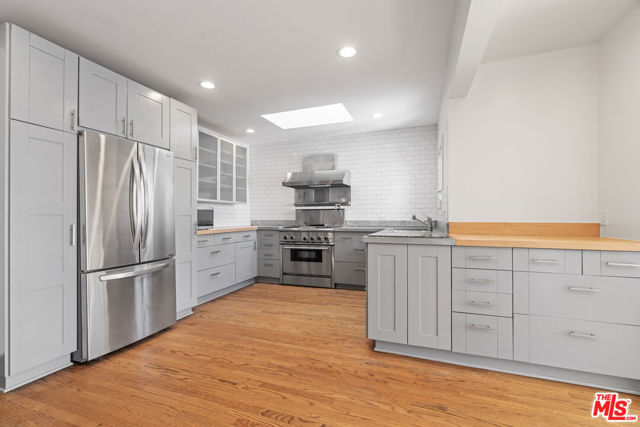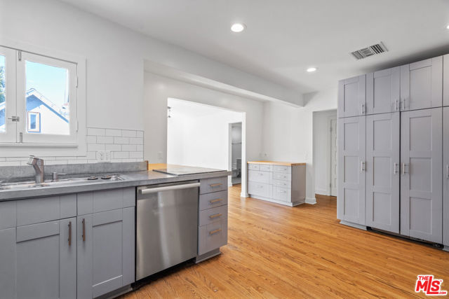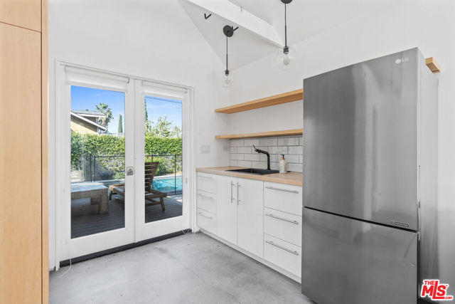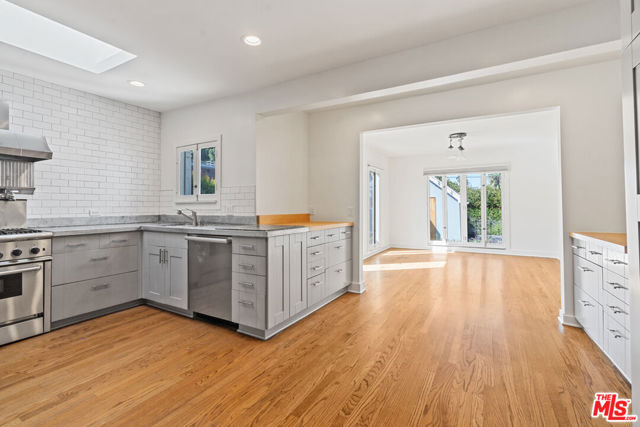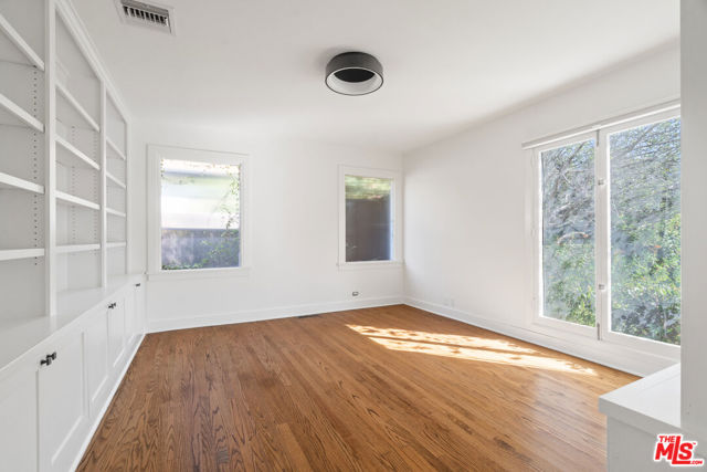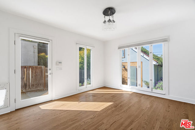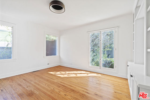 Welcome to this stunning Hancock Park retreat featuring a three-bedroom, two-bath main house and a detached one-bedroom, one-bath ADU, offering the perfect blend of classic charm and modern comfort. Set behind lush hedges for exceptional privacy, the main residence showcases vaulted ceilings, hardwood floors, and a light-filled living room anchored by a charming brick fireplace. The chef's kitchen is equipped with stainless steel appliances, custom cabinetry, and easy access to the backyardideal for seamless indoor-outdoor entertaining. One of the bedrooms functions beautifully as a home office or den, providing flexible living options. The detached ADU offers incredible versatility for guests, extended family, or use as a private studio or workspace, complete with its own kitchenette and separate entrance. Outside, enjoy a sparkling pool surrounded by mature landscaping and a shaded pergola -- an inviting oasis perfect for relaxation or al fresco dining. Ideally located on one of Hancock Park's most desirable tree-lined streets, this home combines privacy, style, and convenience, just moments from Larchmont Village, premier dining, and neighborhood amenities.