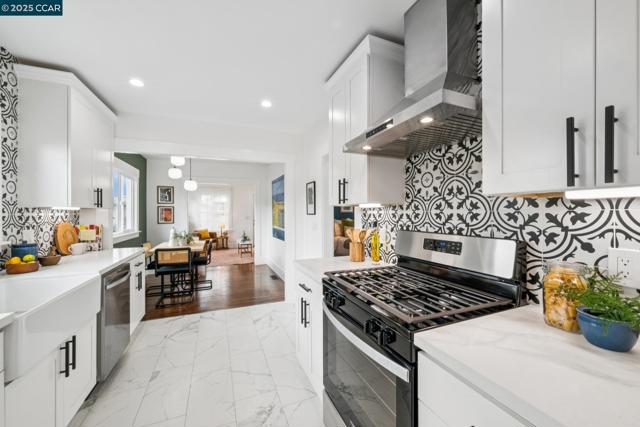 This beautifully renovated single-level bungalow in Oakland’s Lockwood Gardens neighborhood. This 3-bedroom, 1-bath home has been fully updated inside and out. The new kitchen features stainless steel appliances, stone countertops, modern cabinetry, a farmhouse sink, and a full-height tile backsplash. Enjoy refinished wood floors throughout and a stylishly updated bathroom with subway-tiled shower and hex-tile flooring. Upgrades include a new roof, dual-pane windows, high-efficiency furnace with NEST thermostat, tankless water heater, upgraded plumbing, new electrical system and subpanel. Freshly painted inside and out with new landscaping in the front and back. A long driveway with a new extra-wide gate provides additional off-street parking. Move-in ready and tastefully done!