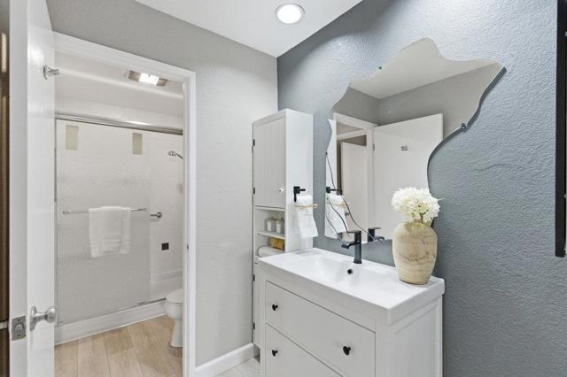 This beautifully updated 1-bedroom, 1-bath corner unit (approx. 860 sq. ft.) offers a serene escape surrounded by nature yet close to city conveniences. The standout feature is the wrap-around balcony overlooking a tranquil pond, perfect for morning coffee or quiet evenings. A private patio off the bedroom adds another relaxing outdoor space. Inside, enjoy luxury vinyl plank flooring, a partially renovated kitchen with updated cabinets, countertops, sink, and lighting, and an upgraded bathroom vanity with added storage. The spacious living area features abundant natural light and cooling cross-breezes that keep the home comfortable year-round. The peaceful setting changes beautifully with each season, with cherry blossoms, golden aspens, and wildlife including ducks, herons, and turtles. Community amenities include a pool, hot tub, sauna, and tennis courts, plus a detached one-car garage with extra storage. Conveniently located near Woodside Plaza, 280, and 101 for easy Peninsula living.