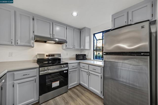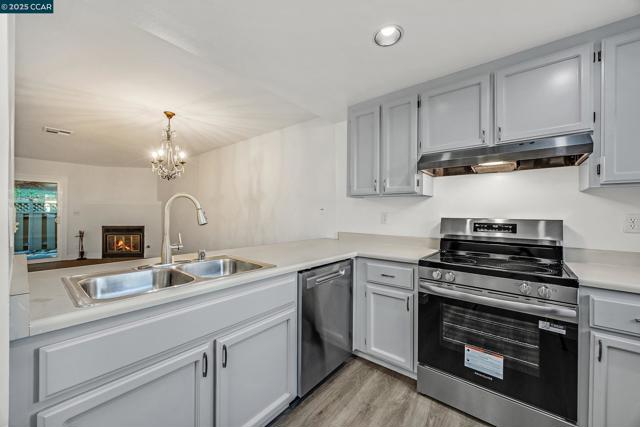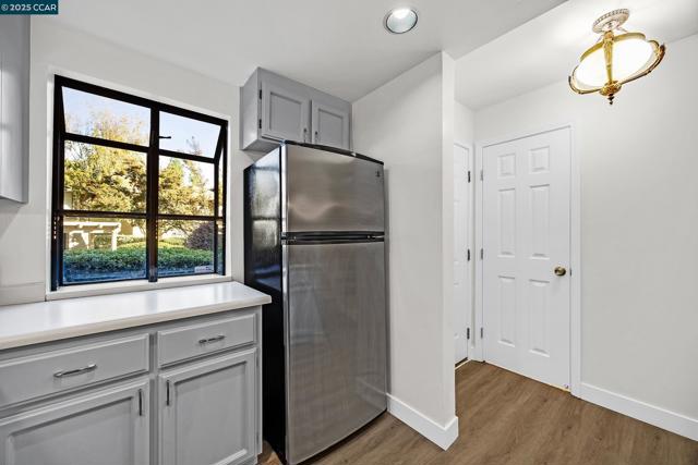Welcome to this bright and inviting end-unit townhouse-style condo featuring fresh updates throughout. Enjoy the modern appeal of new stainless steel appliances, stylish flooring, and fresh interior paint. The open floor plan is enhanced by a gas-starting fireplace angled perfectly for multiple viewing areas, creating a warm and cheerful living space. This two-level design offers both comfort and privacy, with generously sized bedrooms, mirrored closet doors, and convenient inside laundry. Two decks provide the ideal spots to relax or unwind. The community offers a sparkling pool for leisure and entertaining. Complete with two covered carport spaces and an excellent commuter location with easy access to major highways. This home blends convenience, comfort, and charm.