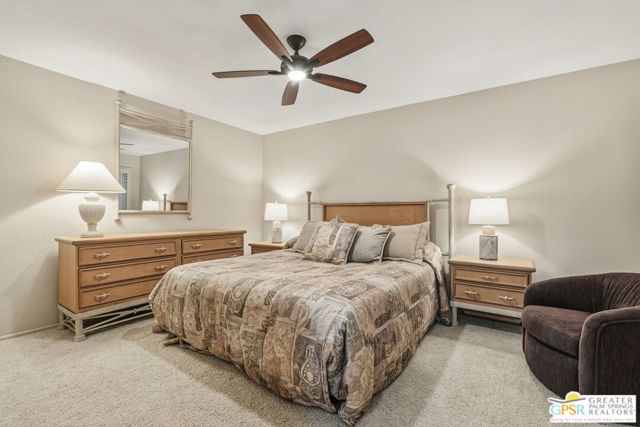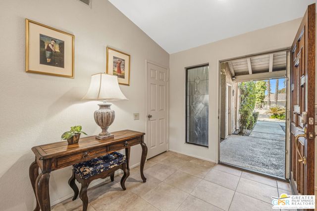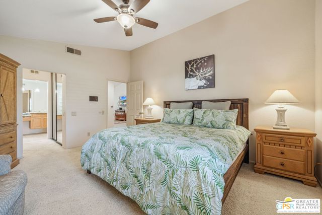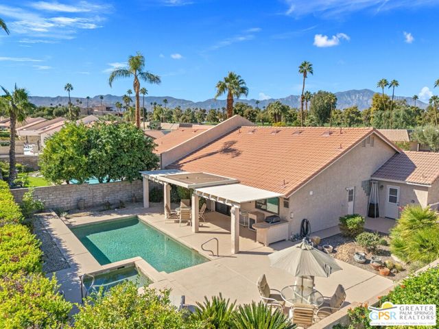 PALM DESERT STYLE, dialed in! Behind the gates of Avondale Country Club, this private escape delivers that effortless blend of sun, style, and serenity with modern comfort, indoor-outdoor living, and total privacy around your own pool and spa. Great curb appeal leads to vaulted ceilings and open-concept living with a spacious kitchen featuring stylish finishes, pantry, and breakfast counter that opens to the patio. Excellent bedroom separation. The ensuite primary offers two separate bathrooms, each with walk-in showers, one with direct access to the pool and another with a private door to the golf cart garage so you can grab your clubs and go. Guest bedrooms are tucked along a separate hall and share a beautifully updated bath with walk-in shower. Outdoor living shines with a built-in barbecue, outdoor shower, and multiple conversation areas surrounded by low-maintenance desert landscaping. Utility room off the kitchen. Two-car garage plus golf cart parking. HOA includes cable and internet, clubhouse, dog park, and a calendar of community events. Avondale is a non-equity private club offering a championship 18-hole golf course, flexible memberships, fitness center, pickleball, tennis, and an active social scene.