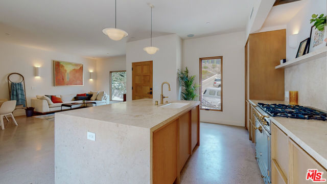 Perched on a quiet cul-de-sac in the hills of Eagle Rock, this newly developed Mediterranean-inspired home embodies the essence of refined Southern California living. Thoughtfully designed with architectural precision and built to the highest standards, the residence offers a harmonious blend of light, space, and texture that feels both luxurious and welcoming. Upon entering, you are greeted by an expansive open-concept floor plan that immediately captures the eye with its soaring 12-foot ceilings, walls of glass, and an effortless indoor-outdoor transition. The great room flows seamlessly into a gourmet chef's kitchen that serves as the heart of the home. Outfitted with a striking La Cornue range, bespoke white oak cabinetry, honed limestone countertops, and a dramatic waterfall-edge island, this kitchen is as functional as it is breathtaking equally suited for intimate family dinners or large-scale entertaining. The adjoining dining and living spaces open to multiple outdoor areas, where verdant landscaping, gentle breezes, and serene hillside views set the stage for relaxed al fresco gatherings. Morning coffee on the patio, weekend barbecues, or sunset cocktails, every moment here feels like an escape. The residence includes three generous bedrooms and three meticulously designed bathrooms. The primary suite is a private retreat reminiscent of a boutique hotel, complete with a spacious walk-in closet, a tranquil spa-like bathroom featuring custom tile work, a large glass-enclosed shower, and direct access to two separate patios. Each finish and fixture throughout the home has been hand-selected to convey understated elegance and natural beauty, from the soft oak tones and stone surfaces to the sleek matte hardware. This impeccable property offers versatility, privacy, and timeless appeal. This property is a sanctuary, away from the bustle of the city, and delivers a rare balance of elegance and functionality.Perfectly situated in a central NELA location, you are moments away from the acclaimed dining, shopping, and culture of Colorado Boulevard, while still enjoying the tranquility of hillside living. This is Eagle Rock at its most sophisticated home where every detail invites comfort, beauty, and connection.