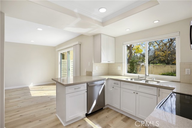 Fully Remodeled *3 BED* 2.5 BATH home. Upon entering 3 Southsand you will be greeted by a spacious living room and dining area with high vaulted ceilings, beautiful vinyl plank flooring, recessed lighting and a grand fire place to enjoy entertaining your family and guests. The kitchen features quartz countertops, subway tiled back splash, white shaker styled cabinets, stainless steal appliances and above - a tray ceiling. The family room is located adjacent to the back yard, where you can enjoy some fun in the sun while BBQing with friends and family. Above the stairway is a wonderful skylight allowing for some additional natural light into the home. The master suite is spacious with 2 sliding closet with ample storage. The master bathroom features an enlarged shower space with honeycomb flooring and marbled styled tiles, dual vanity sinks and a privacy toilet room. Across the hallway you will find 2 additional bedrooms and an additional full bathroom. One of the additional bedrooms enjoys an additional space that can be used for a small den, a study room or additional storage. 3 Southsand also has a 2 car garage with direct access and a driveway that can fit an additional 2 vehicles. Additional considerations include access to the Woodbridge Village Association which provides resort-styled amenities such as 20 pools, 16 spas, 20 tennis and pickle ball courts, a sand bottom lagoon and 2 lakes, access to boating, fishing, fire pits and outdoor BBQing. 3 Southsand is conveniently located near award winning schools in the Irvine School District, near the John Wayne Airport, Irvine Spectrum and near many plazas with wonderful restaurants and entertainment venues. Welcome to Woodbridge in the beautiful City of Irvine!