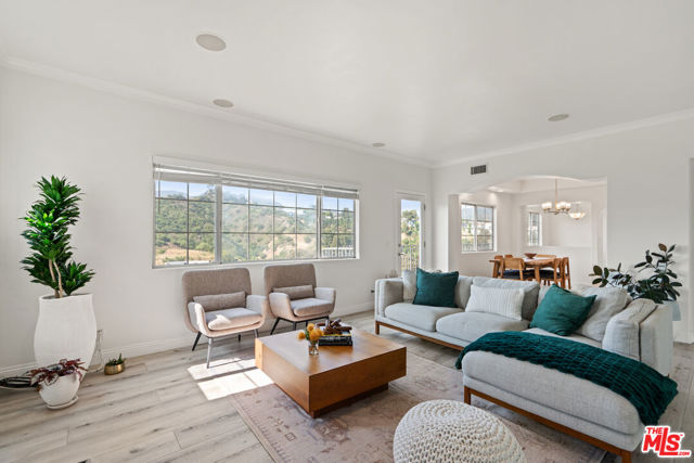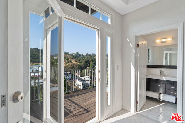 FOR LEASE Behind a gate, on a quiet street is a lovely refreshed home waiting for your enjoyment. Remodeled kitchen, updated bathrooms with each bedroom, and vaulted ceilings are just some of the features of this home. Street level is a two-car garage with direct access to the house and one bedroom with its own bathroom. Upstairs is the living, dining, powder, kitchen, breakfast area den office/tv room. Windows on the north side of the house flood the rooms with light and have panoramic views of the canyon, reservoir and Hollywood Sign. Downstairs from street level is a huge primary bedroom with its own spa tub, separate shower and wonderful sitting/office area. Also downstairs is a third bedroom with its own bathroom and walk-in closet. All levels access decks on the north side of the house. Short walk to Lake Hollywood reservoir or Beachwood Village, and walking distance to shops and restaurants on trendy Franklin Ave. A wonderful home to come home to and relax.