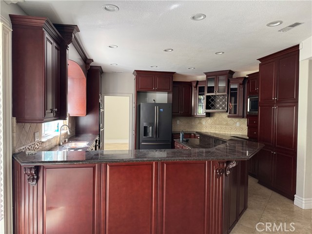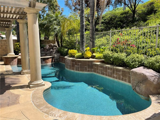 One of Pacific Hills' finest homes, this sophisticated residence embodies the perfect balance of elegance, style and comfort. Meticulously remodeled with no expense spared, the focal point of this luxurious home is a stunning great room w/built-in entertainment center and an amazing chef's kitchen with custom cherry-stained cabinetry, Russian granite countertops, and stainless steel appliances. Upstairs a master suite with separate retreat and fireplace spans the entire width of the home and feels like a luxury hotel suite complete with remodeled master bathroom and his/hers custom closets. Three additional bedrooms are located down the hall, just past the convenient home office and full size laundry room with sink. Outdoors is an entertainer's private paradise with a refreshing pool and spa with waterfall, custom LED lighting, smooth glass bead texture coating, seating area and built-in bbq and covered stone patio. Upgrades throughout include 24" stone tile floors, shutters, newer carpet, crown/base molding, wrought iron stairway railing, lighting, custom paint, ceiling fans, closet organizers, and more. Quiet cul-de-sac street, a short walk to the park and lake Mission Viejo. Attached 3 car garage.