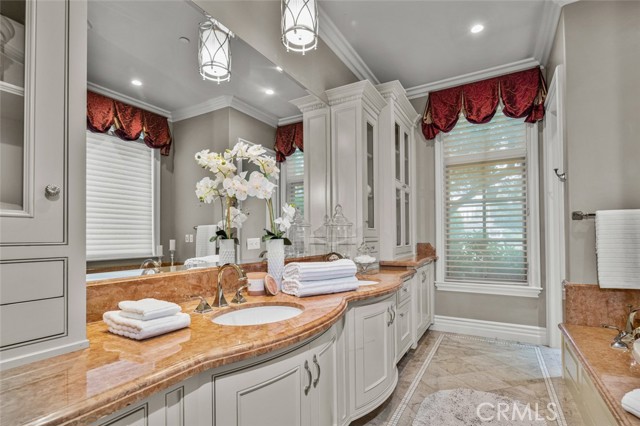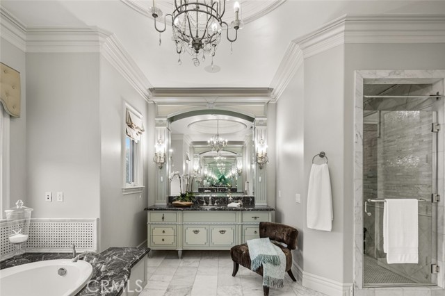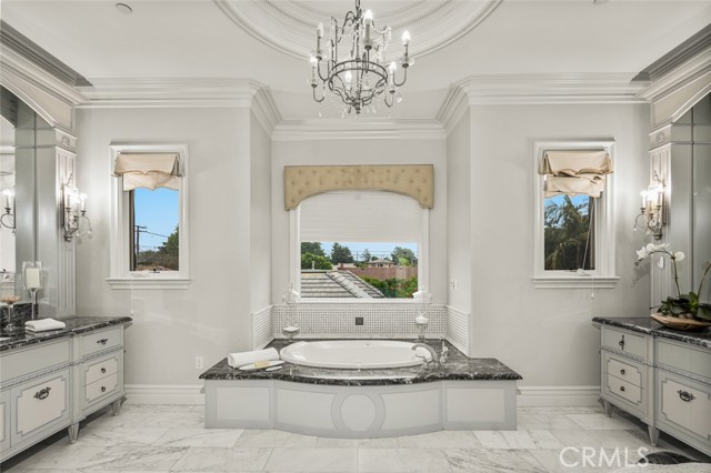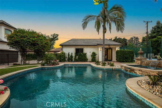 Dramatic, distinctive and undeniably radiant, this stunning custom compound situated within its own private gates provides the perfect blend of classic Renaissance-inspired architecture with today’s conveniences and accoutrements. A dramatic two-story formal entry hall sets the tone for the interiors. From there, a series of wonderfully scaled formal and informal rooms unfold before you. Throughout the spacious interiors, the carefully selected finishes contribute to a feeling of quality, warmth, and comfort. Impressive, yet eminently livable, no other home offers such a unique combination of setting, space, and privacy. The house is complemented by over a half acre of stunning gardens, multiple outdoor living areas, a professional tennis court, and a resort-like pool area ideal for entertaining or enjoying the tranquil setting. Totaling five generously sized bedrooms and six and a half baths, the compound also offers amenities such as a full sized movie theater, private gym, and a sizable reception room. Designed without compromise, this offering includes every imaginable amenity in a setting that is private, spacious, and located in one of Southern California's premier communities.