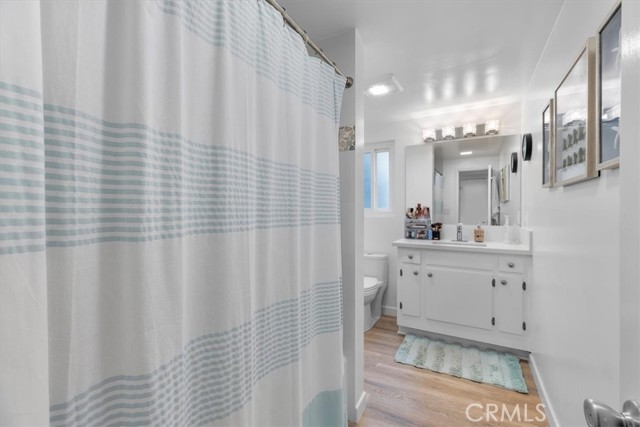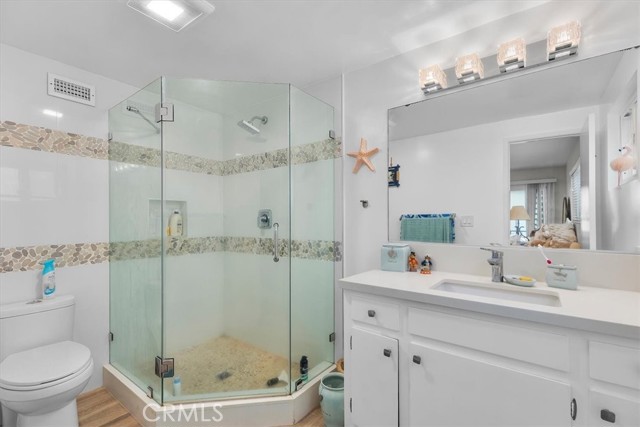 This stunning remodeled bottom unit in a charming two-unit building offers everything you need for comfortable beachside living. The vinyl floors flow seamlessly through the open-concept living spaces, while the south-facing windows offer beautiful views and fill your home with abundant natural light. The updated kitchen is equipped with a dishwasher, microwave, refrigerator, gas oven, and cooktop—perfect for cooking and entertaining. Stay cool year-round with central A/C, and enjoy the convenience of a private laundry closet in the hallway, adjacent to the bedrooms. The primary bedroom features an en suite bath, providing a comfortable and relaxing retreat. Step out onto your deck to enjoy the fresh ocean breeze, or take advantage of the shared backyard, offering a serene space for outdoor activities. A private one-car garage ensures your vehicle and belongings are secure and easily accessible. Located in close proximity to top-rated schools, the beach, downtown Hermosa Beach, and the best shopping and restaurants the area has to offer, this home provides an incredible opportunity to live in one of the most desirable locations in Hermosa Beach.