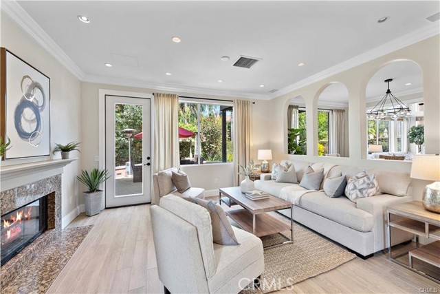 11/22 showings -- GATED Westmont Columbia neighborhood with Mother-In-Law Quarters with private entrance. Upon entering, elegant foyer open up to a spacious living room with two-story ceilings and windows which provides ample of natural lights. Optional formal dining room or used as one great room. Stone archway modern kitchen features quartz counter tops, an extra large custom island, stainless steel GE Monogram appliances, built in refrigerator, and walk-in pantry. The family room is adorned with soft archways set with beautiful stones, custom built-in cabinetry and romantic fireplace. Master bedroom suite with large balcony, luxurious bathroom w/ jetted spa tub, walk-in closet, and custom granite shower and counters. Spacious loft with coffered ceilings and travertine floors. Large back yard with covered patio and grassy area for playground. Newer upgraded and energy efficient HVAC system and wood looking tiles throughout first floor. Walking distance to Citrus Ranch Park, Cedar Grove Park, Peters Canyon Regional Park. Walk, run or bike on Peters Canyon Creek Trail to Newport Beach. Excellent academics schools: Peters Canyon Elementary, Pioneer Middle, and Beckman High School. Conveniently located to nearby shopping centers, restaurants, and accessible freeways and toll roads.
