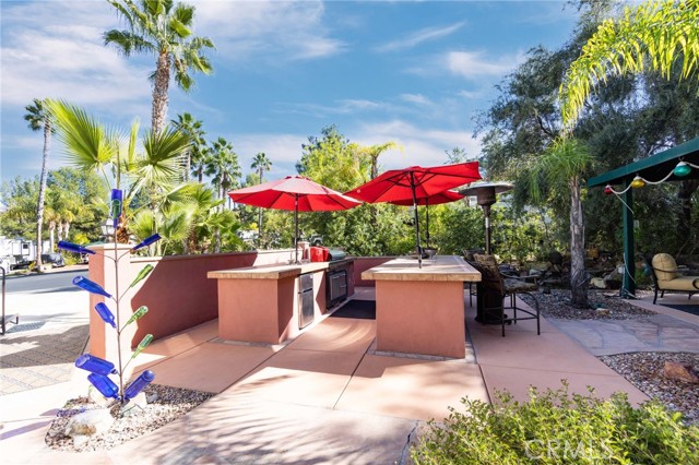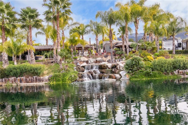 Massive Private Cul-De-Sac Lot with Custom Water Feature, Amazing Fire Pit with Sitting area for lots of company, Large Island with Built-In BBQ, Beverage Cooler, Fridge, Dishwasher and Storage. Back Yard has Canvas cover for extra Shade and cover for your Family Room. Nobody behind you and privacy hedges on both sides with lots of room for extra cars or golf carts. Large Common Area Adjacent to Lot... Financing Available, must see lot…Looking for an RV Resort lot with space and privacy then come check out this perfect location nestled among the foothills of Palomar Mountain, minutes from Temecula Wine Country as well as a convenient location to Palm Springs in just under an hour, 1.5 hrs to San Diego and 1 hr to the beach in Oceanside. Rancho California RV Resort provides amenities such as a 14 hole Executive PAR 3 Golf Course (no fees for owners), 5 Pools/Jacuzzis, Tennis courts, Pickleball courts, Dog park, Club house, hiking trails, Horseshoe lawn and onsite grocery market. The resort is guard gated with no age restrictions. Monthly HOA fee includes use of the golf course, amenities, trash pickup at lot, water/sewer and common area maintenance. If you are considering a premier Southern California RV destination, don't miss out on visiting Rancho California RV Resort - Financing Available, schedule a showing today!