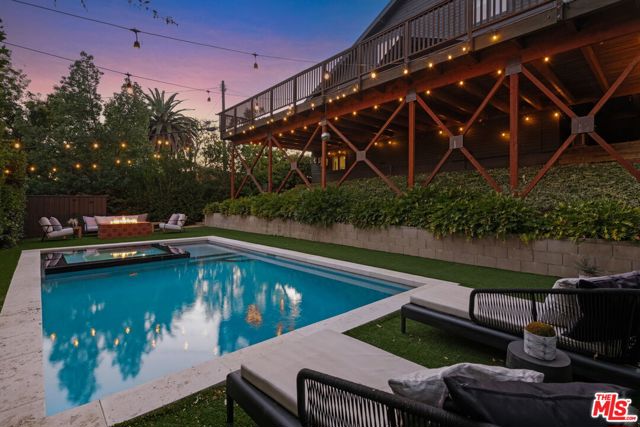Situated in Echo Park on one of Elysian Heights' most desirable flat streets, this thoughtfully reimagined home blends striking architectural design with modern livability. Spanning more than 2,600 square feet, the open interior features soaring ceilings, abundant natural light, and an effortless flow between spaces. The custom kitchen, with integrated appliances, open shelving, and designer finishes, connects seamlessly to a cozy den. The main living area includes both dining and living spaces that open directly to an expansive 1,800+ square foot deck - a natural extension of the home - overlooking a saltwater pool, spa, and firepit. It's an ideal setting for entertaining or quiet evenings outdoors. Upstairs, the primary suite serves as a serene retreat with dual closets and a spa-inspired bath. Two additional bedrooms and a full bath complete the second level, while a main-floor bedroom and bath offer flexibility for guests or a home office. A detached bonus room provides additional space for a studio, gym, or creative work.Upgrades include Tesla solar panels, newer HVAC, and integrated sound and security systems. Located moments from hiking trails, the Silver Lake Reservoir, and neighborhood favorites like Cookbook, Valerie, and Canyon Coffee, this home offers a rare combination of smart design, privacy, and convenience in one of L.A.'s most sought-after neighborhoods. Property also available for lease at $12,000/month.