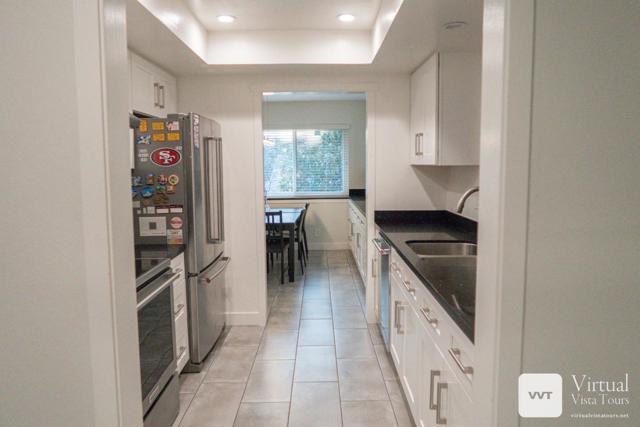 Welcome to this charming 2-bedroom, 2-bathroom home located in the beautiful city of Saratoga. With 1,218 square feet of living space, this residence features an updated kitchen equipped with granite countertops, a dishwasher, an exhaust fan, an oven range, and a refrigerator. The bathrooms have been modernized with granite finishes and a shower over the tub. Enjoy the convenience of a formal dining room and a separate family room with vaulted ceilings, perfect for gatherings and relaxation. The home boasts a combination of laminate, stone, and tile flooring, adding both style and durability. Stay warm in the cooler months with central forced air heating, and cozy up by the fireplace. The laundry facilities are part of the community amenities, which also include a pool and a pool house. This property is within the Saratoga Union Elementary School District. Don't miss this opportunity to own a lovely home in a desirable location with excellent amenities!