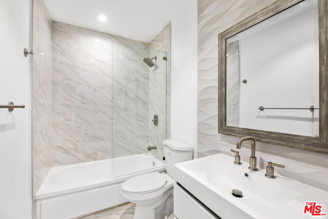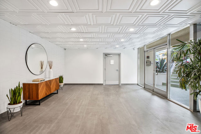 Beautifully bright and quiet corner unit with only one shared wall, ideally situated between Sunset Plaza and Santa Monica Blvd in the heart of West Hollywood. This updated home features spacious rooms with light wood laminate flooring, recessed lighting, and abundant storage throughout.The kitchen is equipped with stainless steel appliancesincluding refrigerator, dishwasher, range, and microwaveplus elegant stone countertops and crisp white cabinetry. A dining area connects the kitchen to a private balcony overlooking the peaceful courtyard, perfect for morning coffee or evening relaxation.The generously sized primary suite enjoys a large window that fills the room with natural light, excellent closet space, and a stunning marble bathroom complete with a soaking tub and separate shower.Building amenities include a sunny pool with lounge seating, exercise room with up to date equipment, a spectacular rooftop deck offering 180-degree city views, ideal for relaxing or entertaining guests. Additional highlights include one conveniently located parking space and storage unit near the entrance, guest parking, and a community laundry area. Located moments from world-class dining, shopping, and entertainment, this home offers easy access to The Grove, Beverly Center, and Cedars-Sinai. Experience the best of West Hollywood living in this serene, stylish retreat.