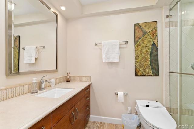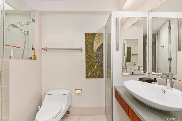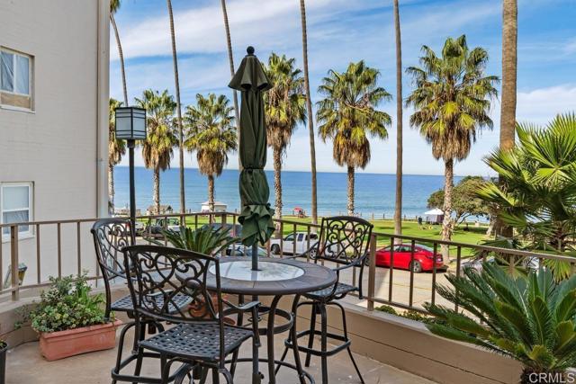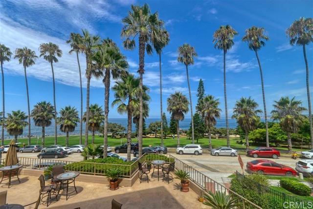 Immerse yourself in the sophistication of oceanfront living at 1040 Coast Boulevard, Unit 104, La Jolla. This elegant 2-bedroom, 2-bathroom residence spans 1,125 square feet, featuring high-end design with a chef's kitchen and a thoughtfully crafted split bedroom layout. Luxurious stone and wide plank wood floors complement the stunning views of Scripps Park and the ocean framed by a grand picture window. Enjoy conveniences like air conditioning, assigned garage parking, and in-unit laundry. Perfectly positioned in La Jolla's vibrant core, this home invites a harmonious lifestyle. Schedule your private tour today!