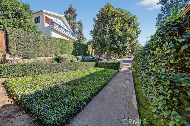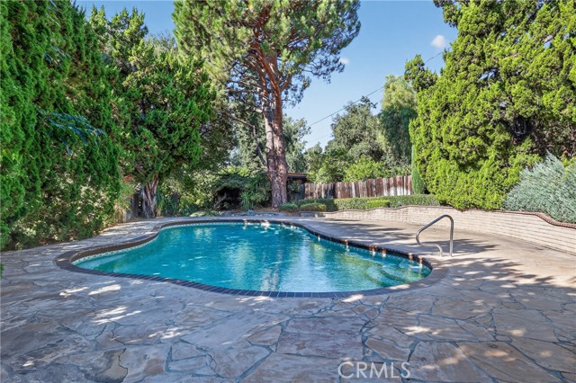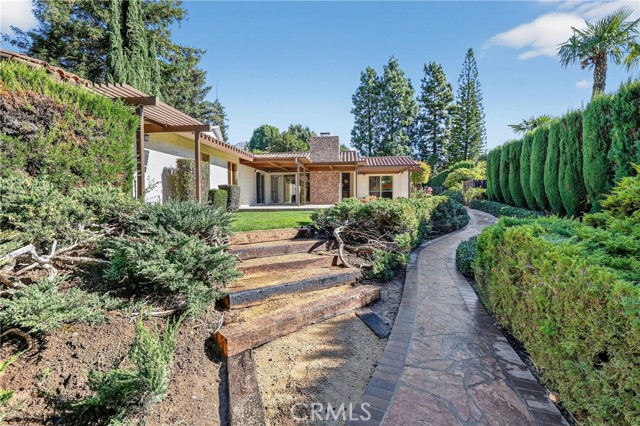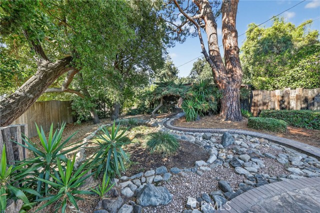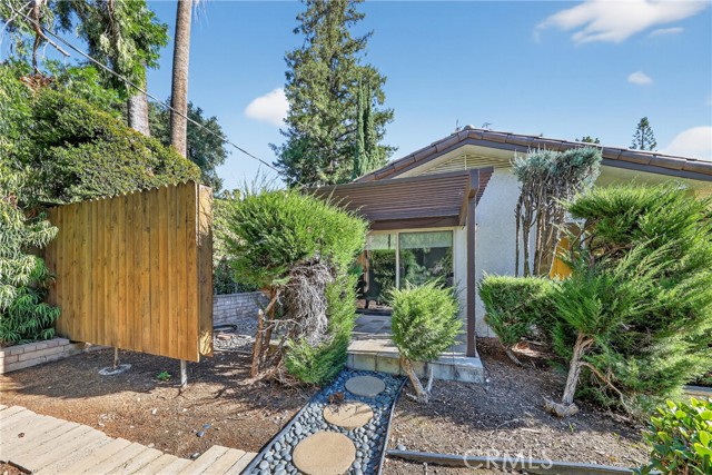 Nestled in the highly sought-after community of San Antonio Heights, this single level mid-century inspired home offers serenity, privacy, and breathtaking natural surroundings. As you approach down the private paved driveway, you're immediately embraced by lush greenery and tranquil atmosphere. The exterior showcases a modern architectural feel with striking lines and features. Inside the sprawling layout boasts fresh neutral tones, designed for effortless entertaining and everyday comfort. The formal entry leads to the oversized living room with an elegant slump stone fireplace, and wall of glass overlooking the private courtyard. The family room is a stunning space, where expansive windows embrace natural light and frame views of the picturesque yard. Just a glance away, the kitchen features an abundance of granite counters, and breakfast bar flowing seamlessly into the main living area, perfect for staying connected while hosting. Enjoy beautiful natural travertine flooring throughout, a breakfast nook, and an adjacent formal dining room, designed to accommodate both large parties, or intimate gatherings. The primary suite has large glass sliding doors leading to a private lattice covered patio, and en suite containing a spacious glass enclosed walk-in tub/shower, displaying views of the private outdoor greenery. The dual-sink vanity and spacious walk in closet complete this tranquil space. The secondary bedrooms feature an oversized layout, warm wood flooring, and mirrored wardrobes, and the 4th bedroom is currently used as an office with no closet. The laundry room includes abundant linen storage, a utility sink, and convenient access to the home’s exterior. Outdoors, this expansive lot continues to impress—surrounded by a variety of mature trees, lush landscaping, and ample usable space for relaxing or entertaining. Wander down to your private, pool with slate surround, perfectly positioned amongst the majestic trees and greenery, for a resort-like feel. Continue through the secret garden even further, to find a green house/ garden shed, covered patio, and a sizeable private orchard, backing up to the tranquil wooded ravine. This exclusive home and grounds with 2016 updated roof and interior is a dream come true, making it the perfect place to call home!