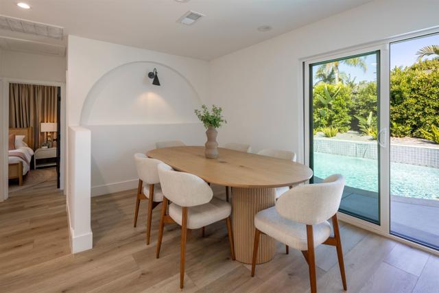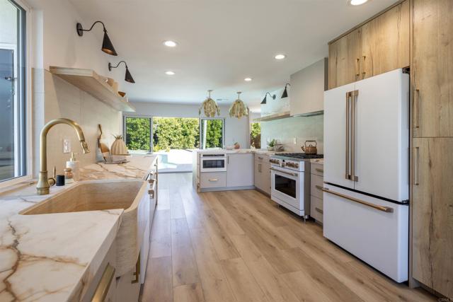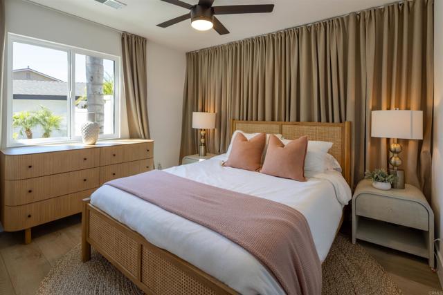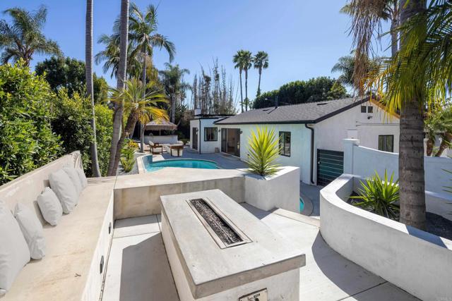 Stunning single-level coastal modern smart home with ocean views, cohesive upgrades, and an expansive backyard oasis in Fire Mountain, just minutes to the beach. Recently reimagined with high-end design in mind and curated by a professional artist. Filled with natural light, the home features open living, multiple seating areas, and an alcove dining room. The gourmet kitchen boasts two-tone linen and Halifax Oak cabinetry, luxury white Café appliances, and porcelain countertops. Sliding glass doors frame the kitchen and living areas from all sides, expanding the space to the wraparound yard, creating an indoor-outdoor lifestyle. The layout includes dual primary suites, each with an ensuite bath featuring decorative tile and custom lighting. Perfect for entertaining, the outdoor space offers a pool with water features, hot tub, raised seating with firepit, and multiple areas for dining & lounging, including a built-in bbq bar with Tahitian-style palapa. Additional highlights include owned solar, two Tesla batteries, EV charger, smart lighting and AV system with indoor & outdoor surround sound. An oversized detached two-car garage with epoxy flooring and two large sheds provide additional space for storage, a gym, or studio office. Dual electric gates with circular driveway offering security, privacy, and ample parking. Within biking distance to the beach and close to top-rated schools, parks, shopping, and dining. Enjoy coastal living at its best.