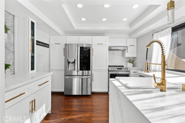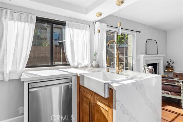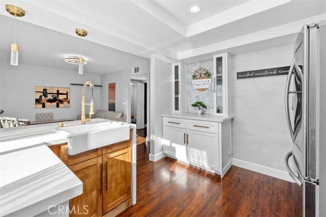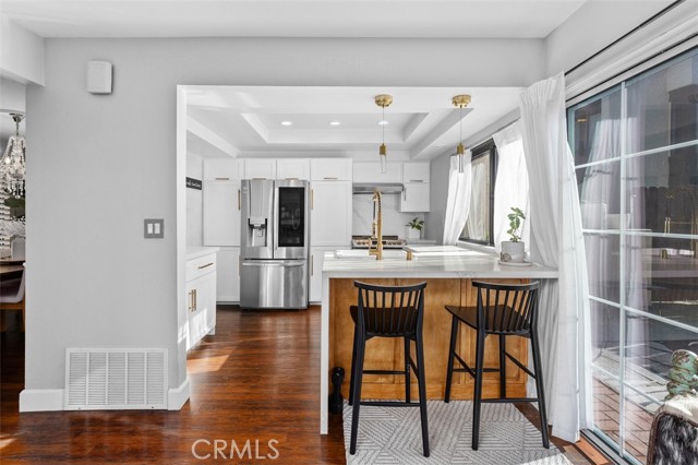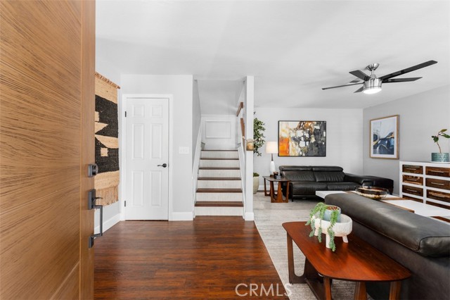 Welcome to Bonita Views! This beautifully updated end-unit townhome is ready for a new owner to love it! This townhome unit offers 4 bedrooms (all on 2nd level), 2.5 bathrooms, a 2-car garage, two private patios and an upper balcony. This is a townhome with 3 outdoor spaces you will love! The remodeled kitchen features quartz countertops with a waterfall edge, peninsula counter seating, designer cabinetry and stainless steel appliances (refrigerator included). The spacious living & formal dining rooms include elegant wainscoting & chandelier lighting. The separate family room offers a cozy fireplace, a charming coffee/bar nook & direct access to the oversized backyard patio, ideal for BBQs, gatherings or kids play space. Warm tone wood flooring & plantation shutters enhance the main level. Ceiling fans installed throughout & the neutral tones create a blank canvas to make the home your own. Upstairs is the primary suite which includes a walk-in closet, bonus storage room, en-suite bath w/ oversized shower & dual vanities, plus your own private balcony. 3 additional bedrooms upstairs, along w/ an updated bathroom with tub/shower. Pattern tiled flooring on the 2nd level is unique & easy w/ pets & kids. The community amenities are just steps away from this unit and include a sparkling pool & spa, oversized fitness room & renovated clubhouse for parties & meetings. This home is conveniently located near schools, parks, shopping, dining, & major freeways. This townhome is perfect for commuters, families, and anyone looking for a low-maintenance lifestyle with room to spread out. Don’t miss this rare opportunity in Bonita Views. Homes here don’t come up often!