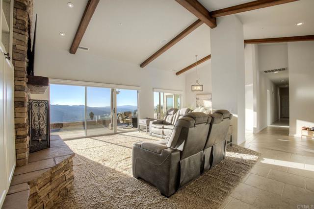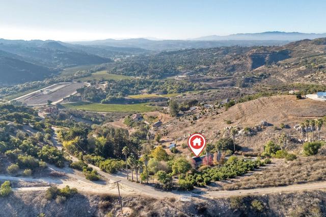 Panoramic westerly sunset views from most rooms! Very private single story custom estate situated amidst 2.98 acres in beautiful Bonsall! Enjoy gentle ocean breezes daily! Freshly painted walls/trim/doors & cabinetry. Open floorplan. Vaulted ceiling in family room with built-in wall unit & fireplace. Kitchen features double oven & leathered granite counters with exceptional views from every vantage point! Primary BR is located on a separate wing from 3 other bedrooms & optional 5th BR/bonus room. Primary ensuite features a Coffered ceiling, cozy fireplace & built-in California Closet & has direct access to the back patio & spa! Bonus room has a wet bar & private entrance-great for guests, game room, gym etc. Built-in speakers in most rooms & outdoor entertaining space. Central A/C throughout+split unit in Primary BR. Fenced & cross fenced backyard for pets to roam freely. 2 raised garden beds & above ground spa. Tree lined extended driveway entrance with avocado trees & floral varieties. Avo trees & landscape sprinklers are on timers. Oversized garage with work station. New tankless water heater. Paid solar & EV charger. Seller recently invested $45,000 in new pavers & retaining wall for expansive outdoor living! Bonsall schools. No HOA. Private road maintenance $750/year. This peaceful sanctuary offers convenient access to I-15 & Hwy 76 yet feels miles away in this semi-rural community! COME SEE!
