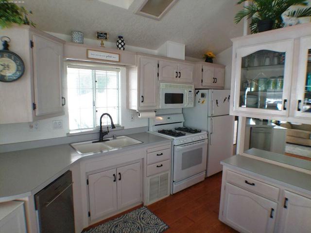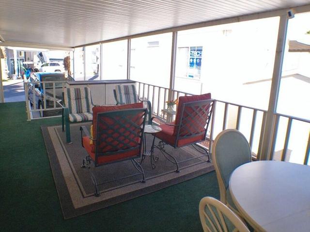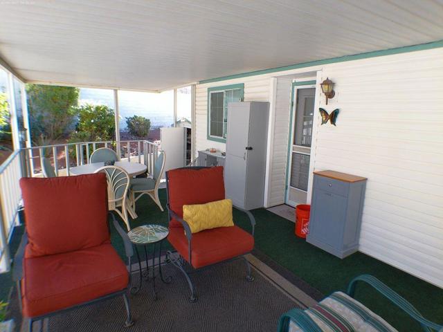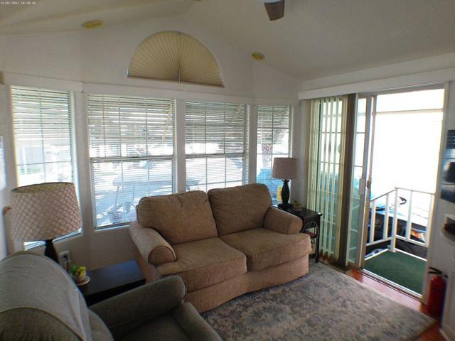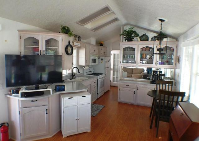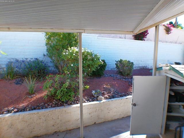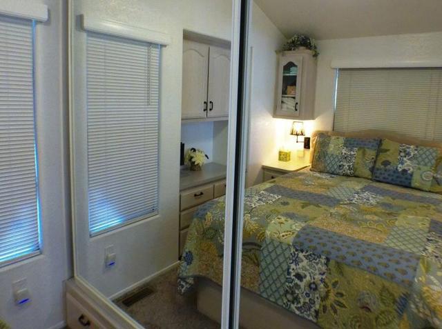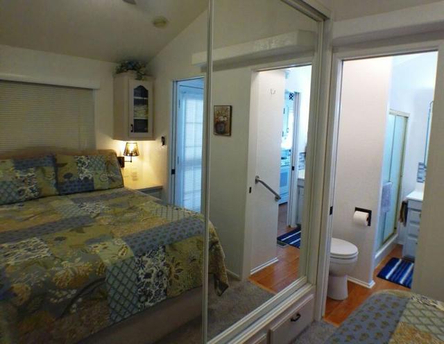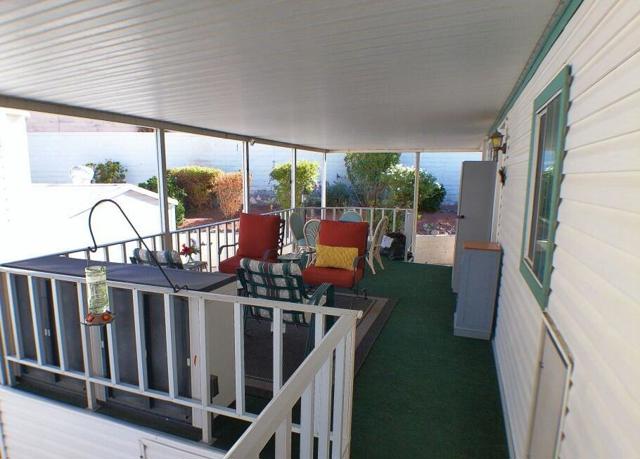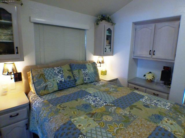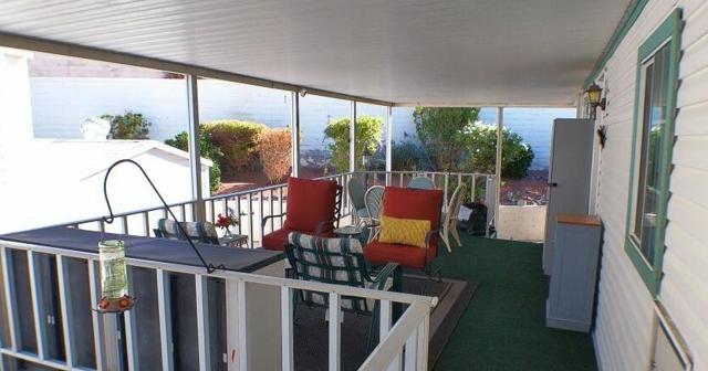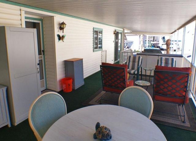 This Hallmark Park Model has upgrades through-out. Clean and located on the back East Wall with a shaded covered deck to enjoy. A washer/dryer is located in the back shed. Well-appointed and is a pleasure to show. Located in a quiet area of the park. The Golf Cart is negotiable outside of escrow. Ready to Move in, just bring your personal effects.